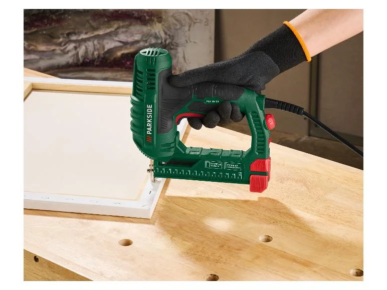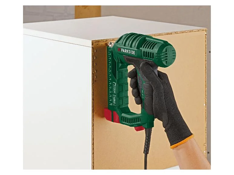 - Compatible avec les accessoires courants du marché – par exemple set d’agrafes et de clous PARKSIDE®