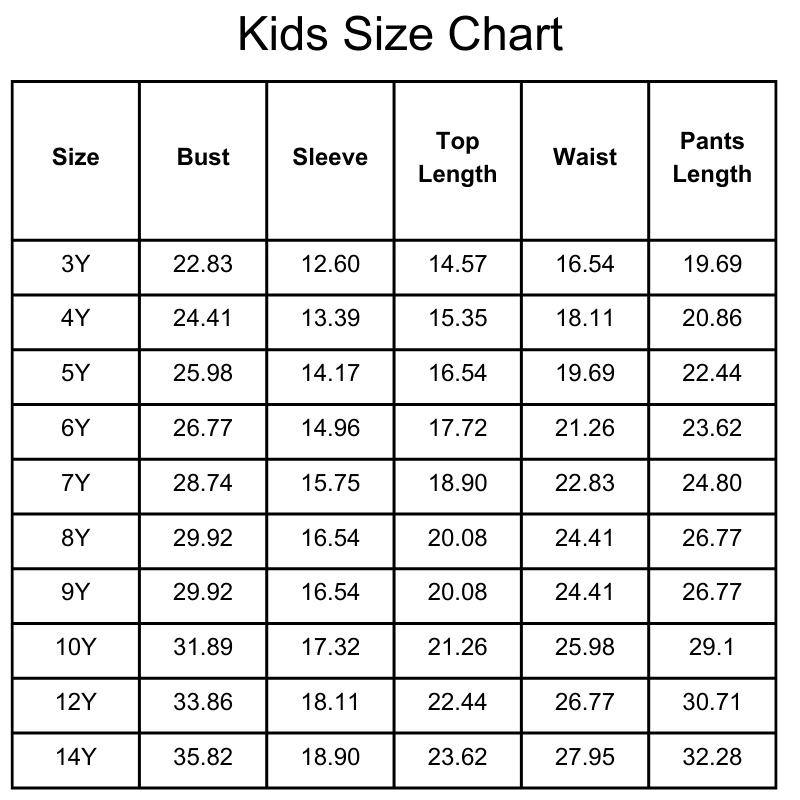 Size Chart(inches):