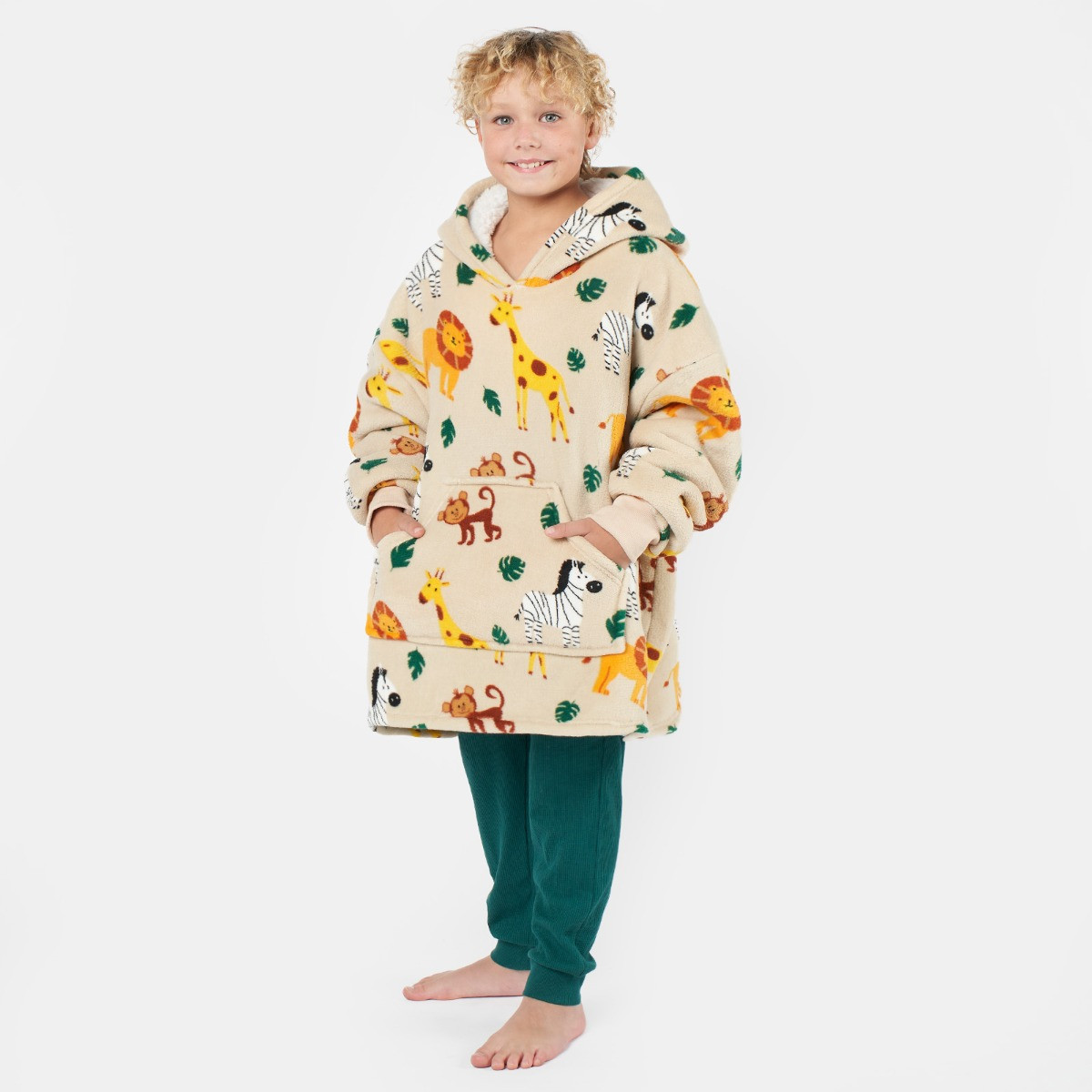 Embark on a wild and cozy adventure with the OHS Safari Print Hoodie Blanket in Beige for Kids. This snuggly masterpiece combines warmth and style, enveloping your little explorer in a safari-inspired print. Perfect for chilly escapades or lounging at home, it's a whimsical blend of comfort and imagination, igniting playful spirits.