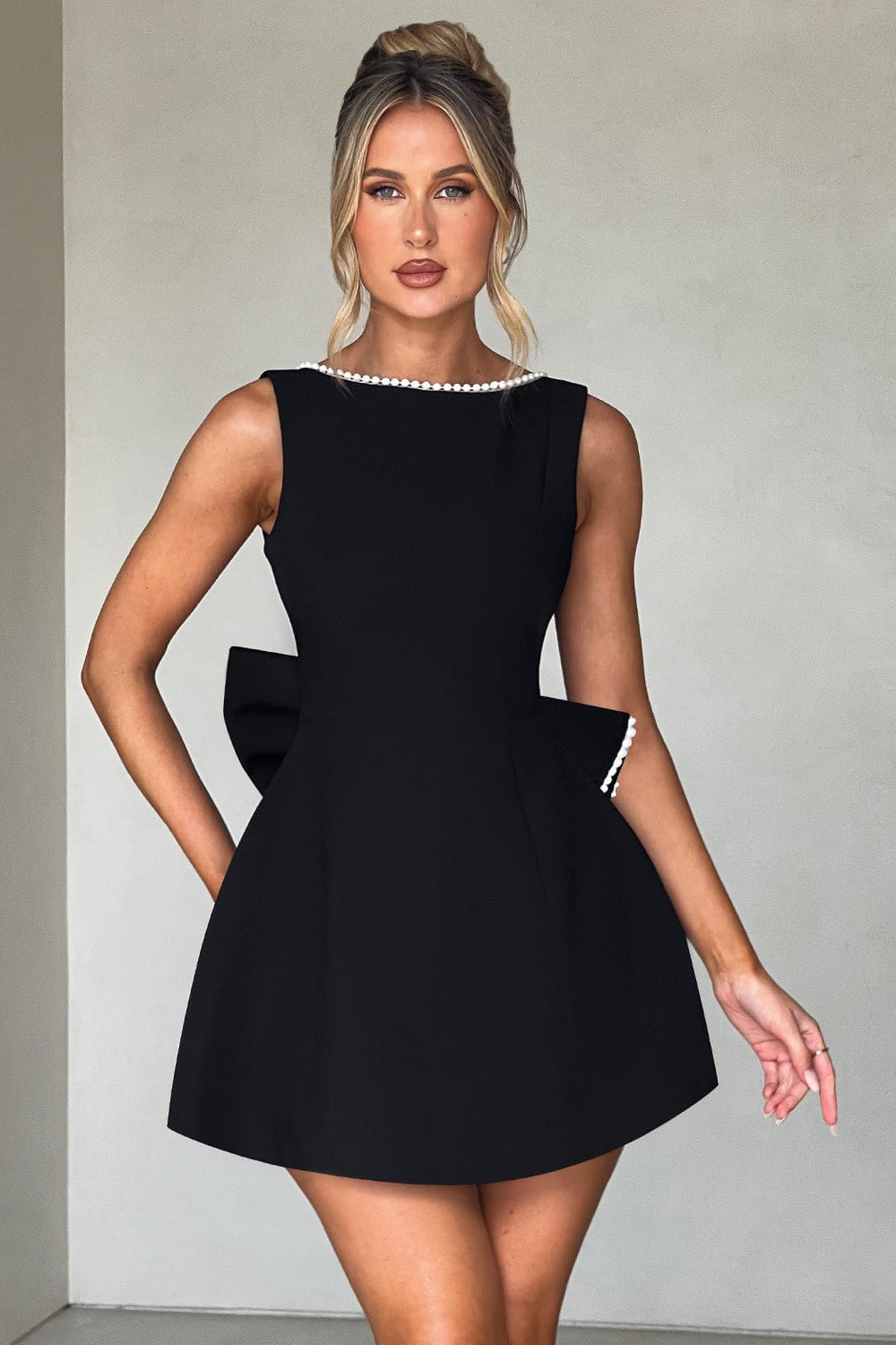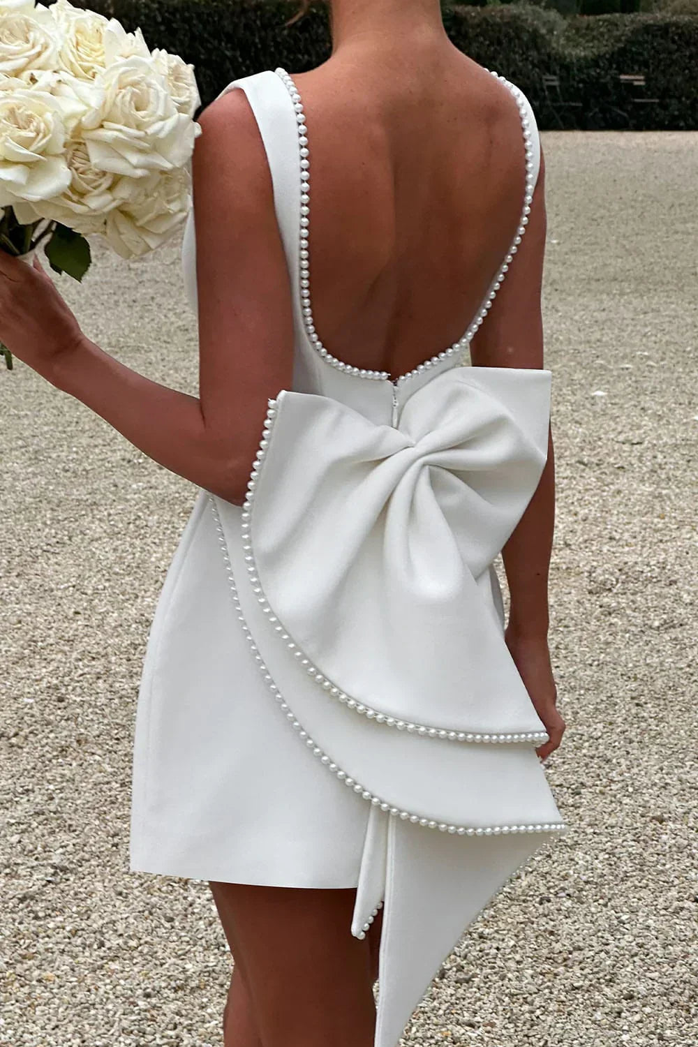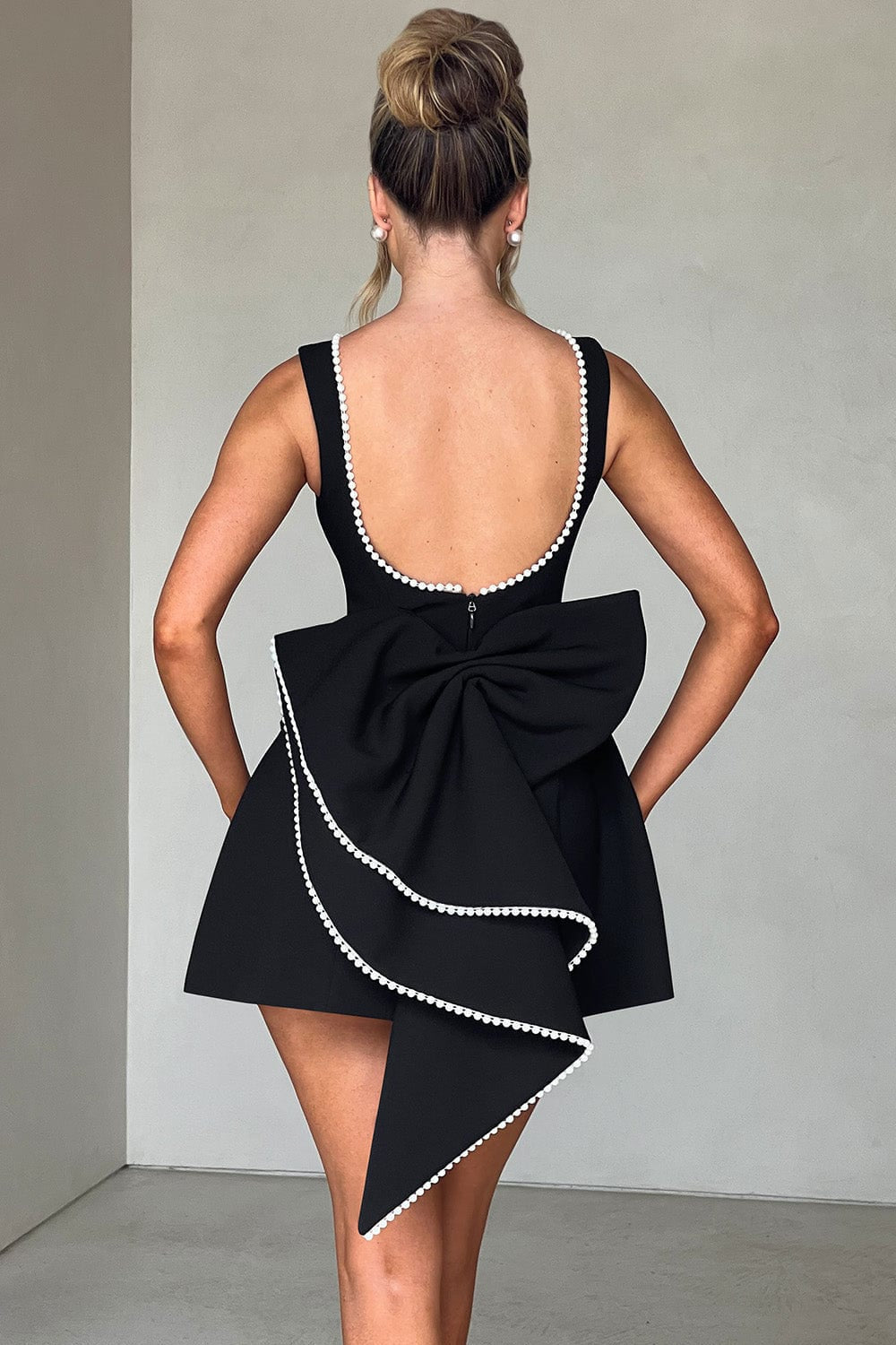 Open back with pearl detailing;