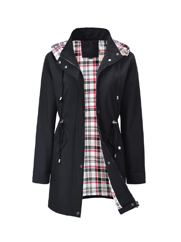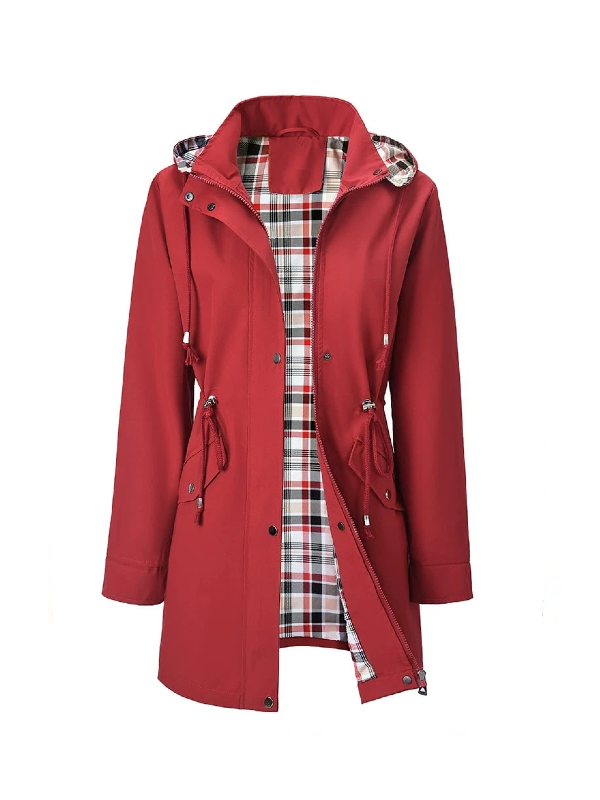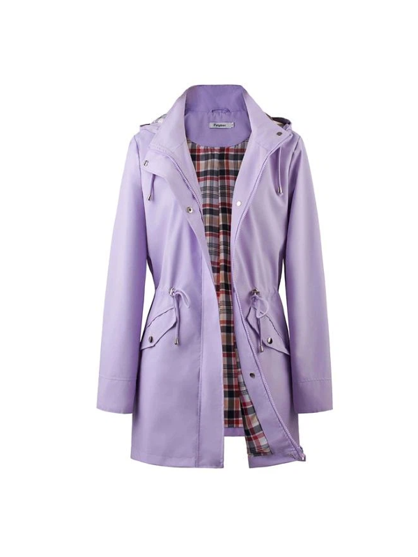 plus size womens plus size lightweight hooded windbreaker jacket casual zip up with adjustable waist long sleeves and pockets solid color for   outdoor spring jacket adjustable waist jacket durable fabric jacket details 1