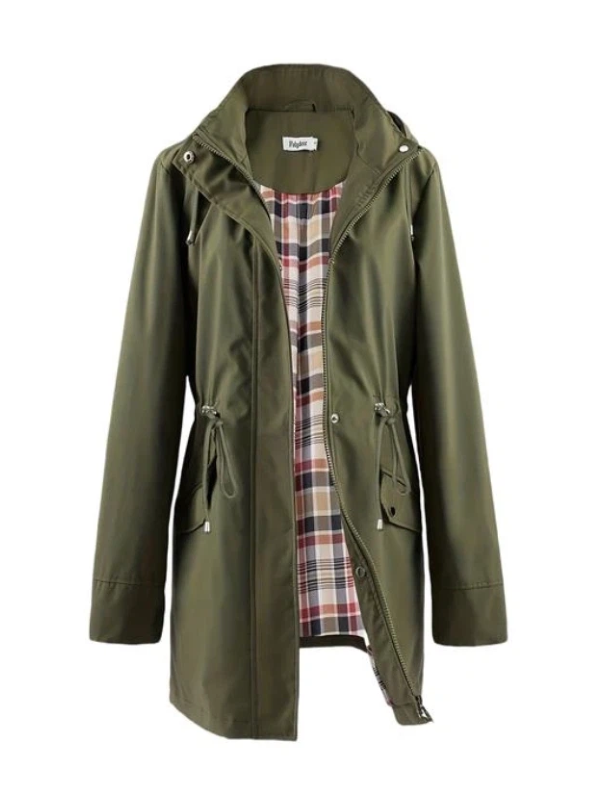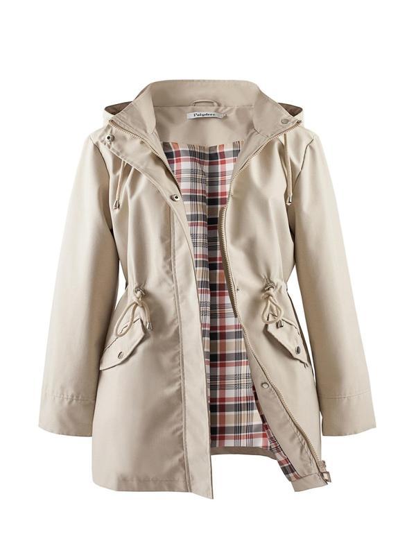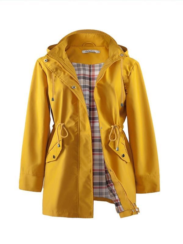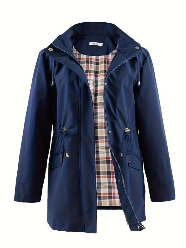 • [Plus Size] Plain Drawstring Longsleeves Hooded Trench Coat, Basic Casual Long Sleeve Zipper Jacket for All Seasons, Cold Weather Clothes, Women's Clothing for Daily Wear, Womenswear, Outerwear