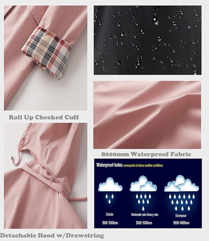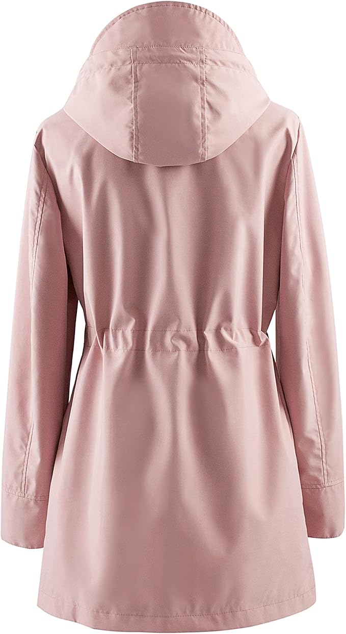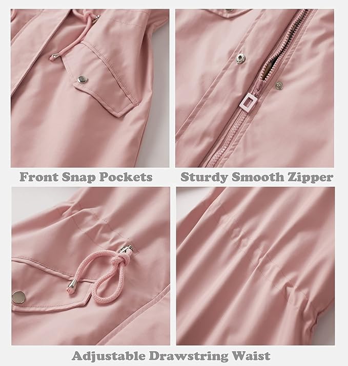 plus size womens plus size lightweight hooded windbreaker jacket casual zip up with adjustable waist long sleeves and pockets solid color for   outdoor spring jacket adjustable waist jacket durable fabric jacket details 5