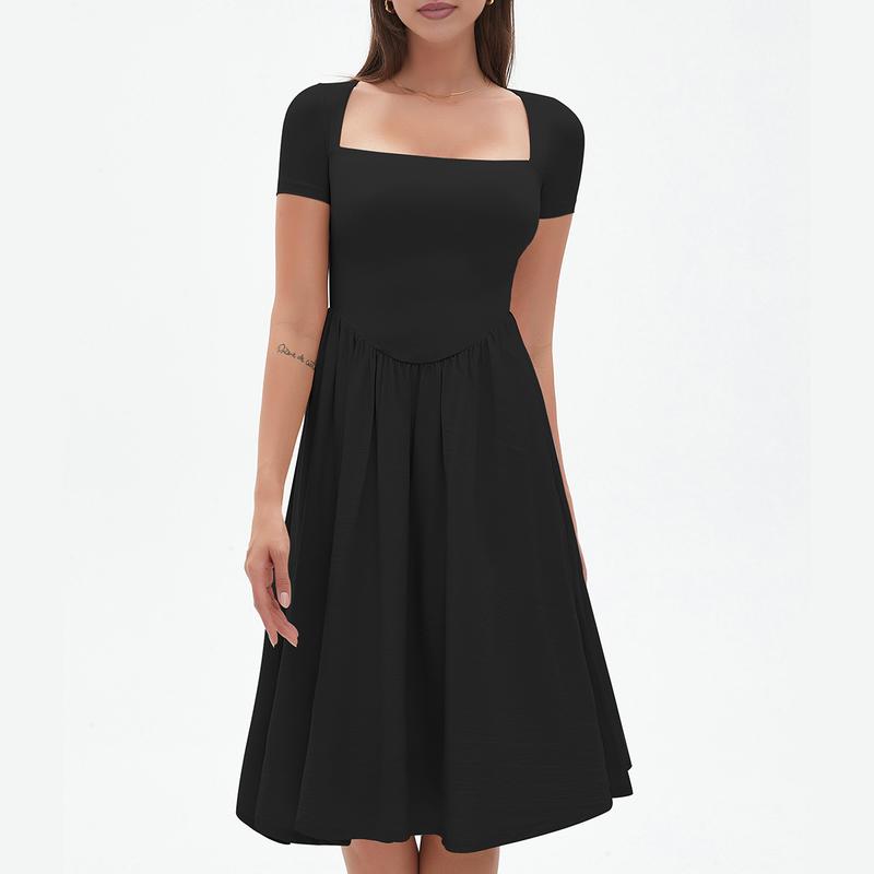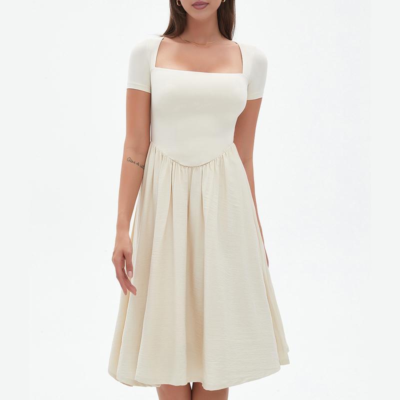 Flattering Square Neckline �� Elegant square neckline with a fitted bodice enhances the feminine silhouette.