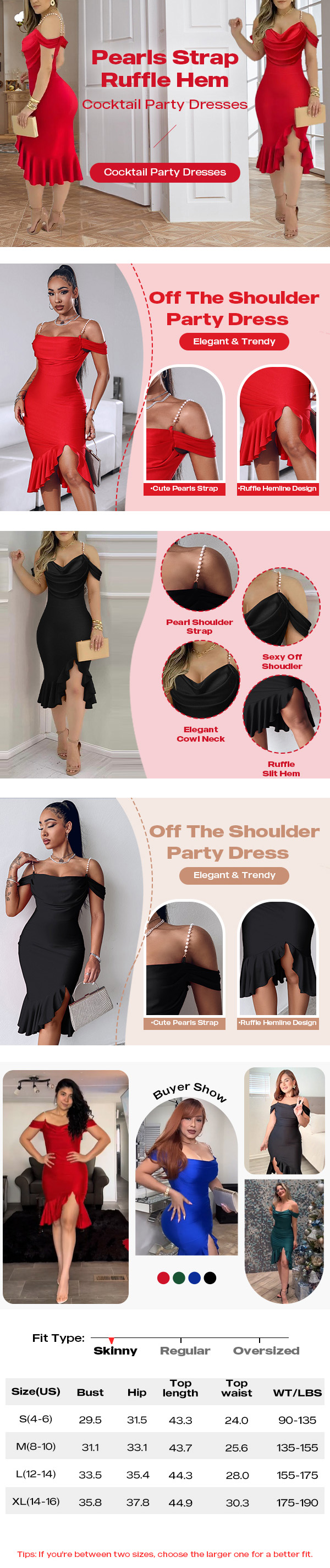 3. Design Details �� Cold-shoulder pearl chain straps meet a draped cowl neckline, finished with an asymmetrical ruffle hem and subtle slit for elegant movement.