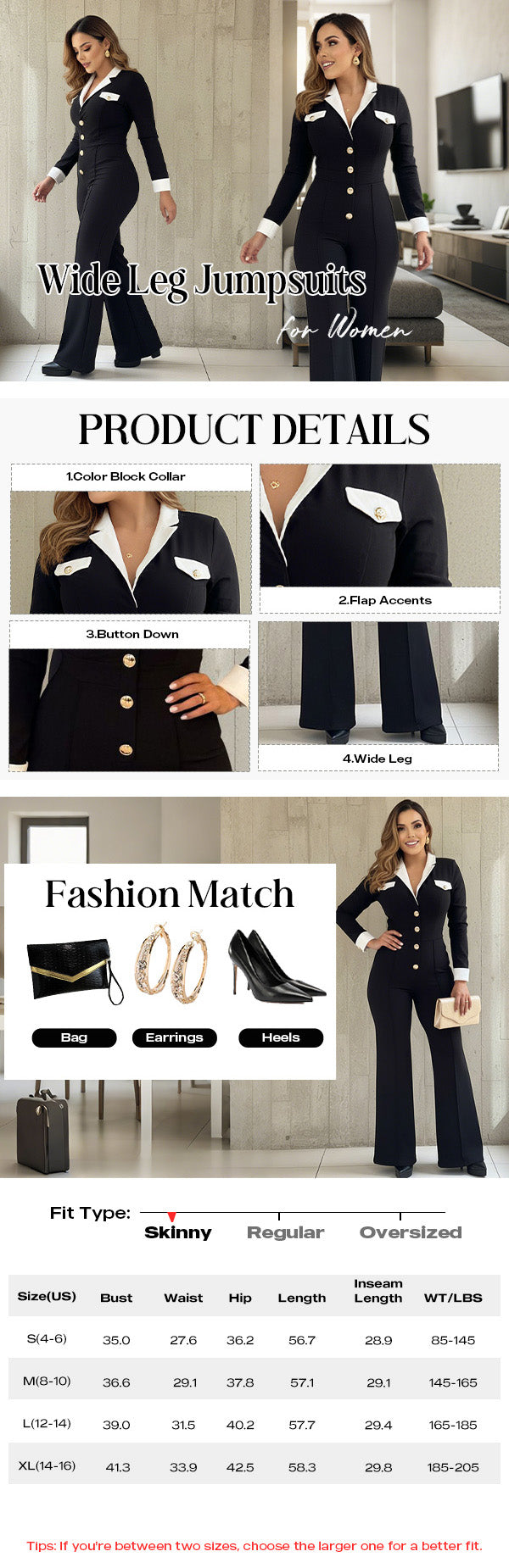 Elegant Metal Button Accents �� Gold-tone buttons add a touch of luxury, enhancing the overall polished and sophisticated appeal of the jumpsuit.