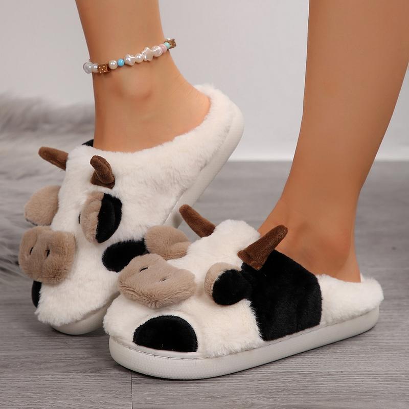 Cozy Cotton Cow Slippers for Women - Cute Animal Bedroom Shoes Winter Indoor Outdoor Slippers for Women