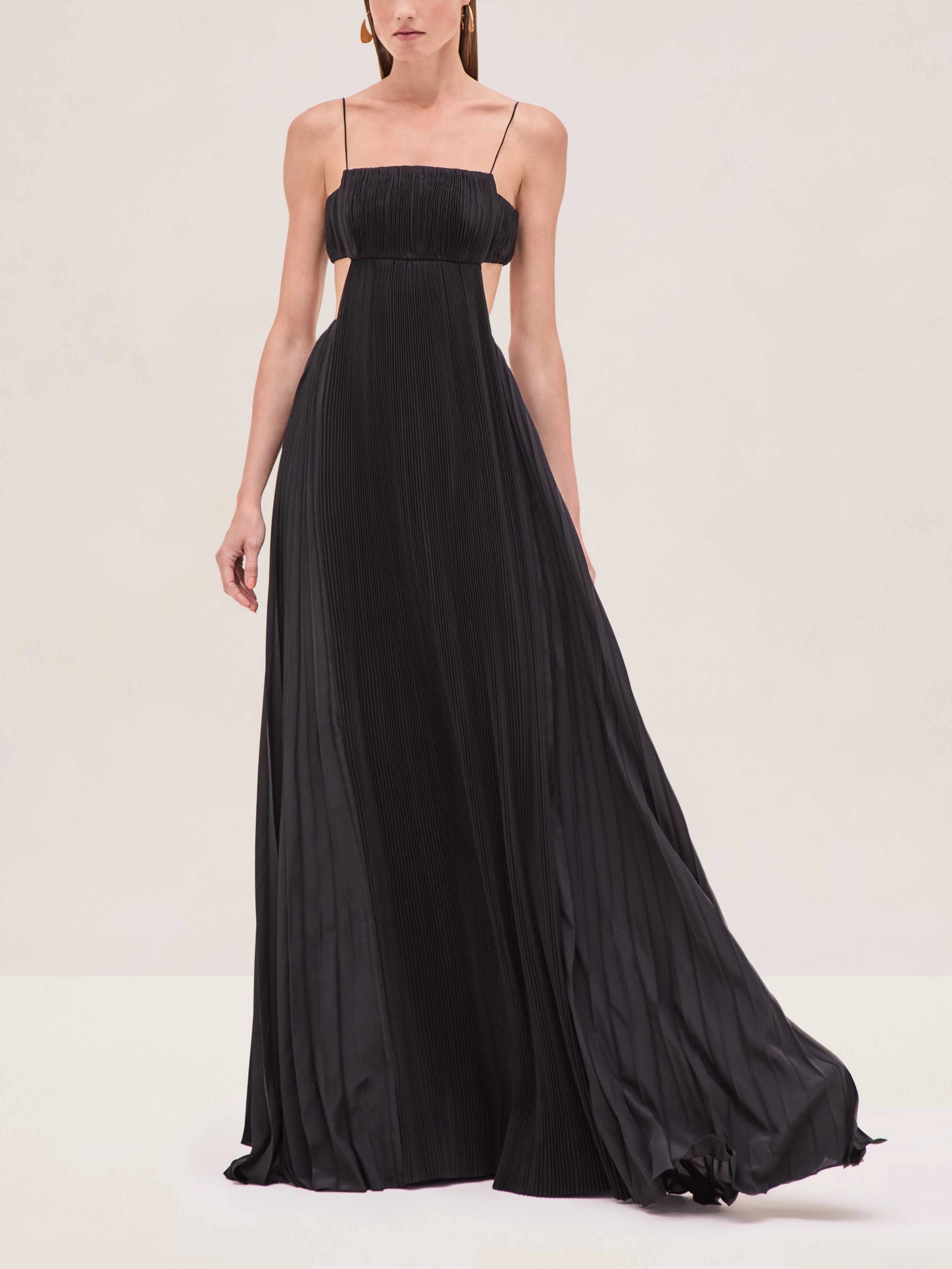 Elegant Pleated Cutout Flowy Party Maxi Dress