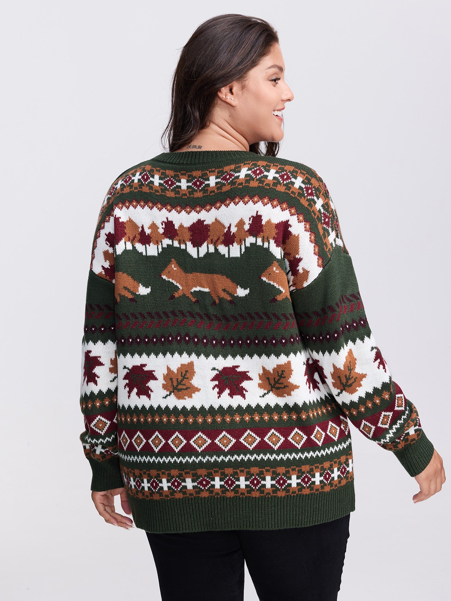 Shop Forest Pattern Jacquard Round Neck Pullover now and redefine your style with confidence at BloomChic. Tailored for mid and plus-size women. This trendy Sweaters Cardigans Women, sizes 10-30. Color:ArmyGreen;Neckline:Round Neck;Sleeve Type:Drop shoulder sleeve;Prints:Landscape pattern;Pocket:No-pocket;Belt:No-belt;Closure Type:Non