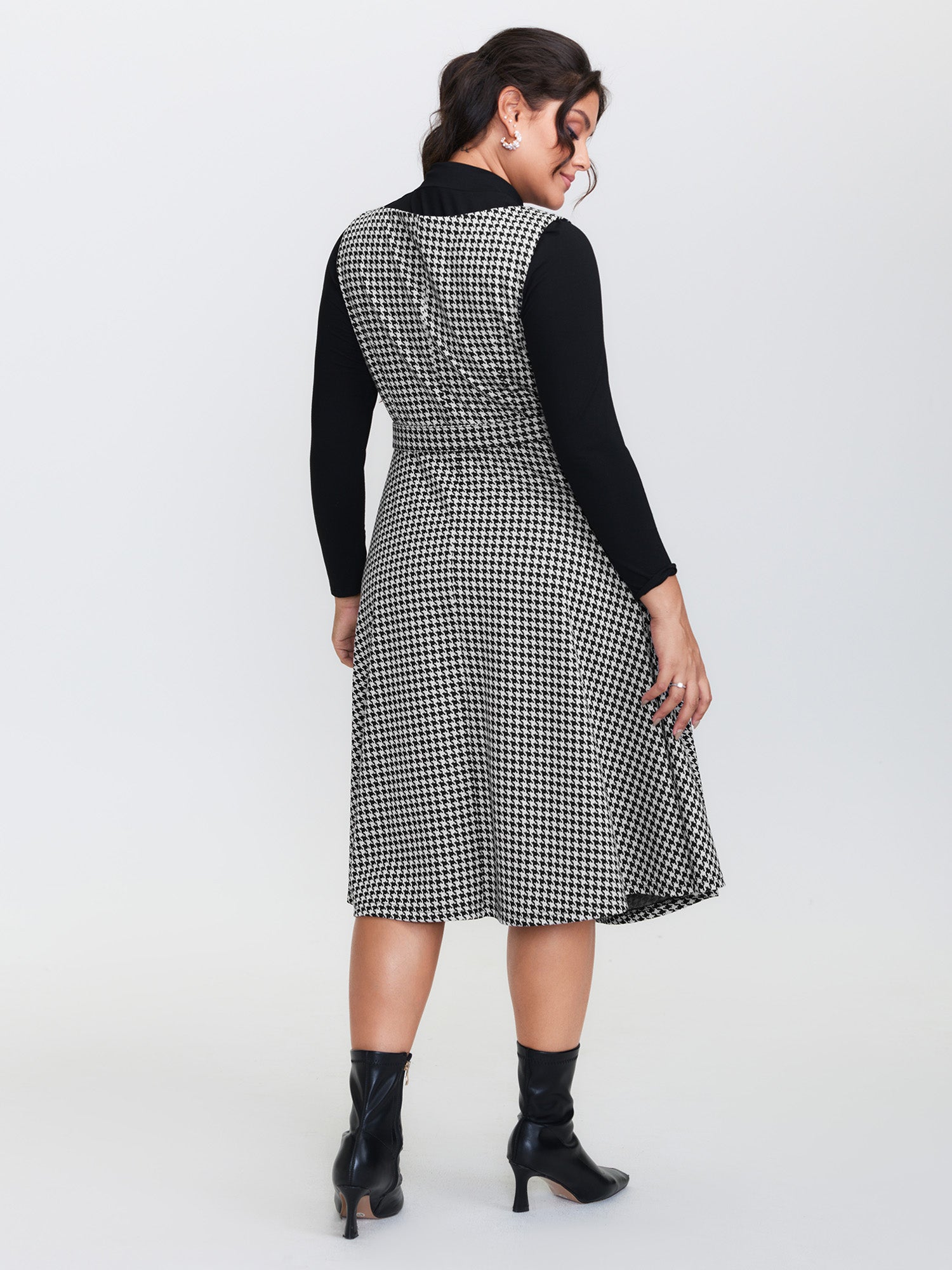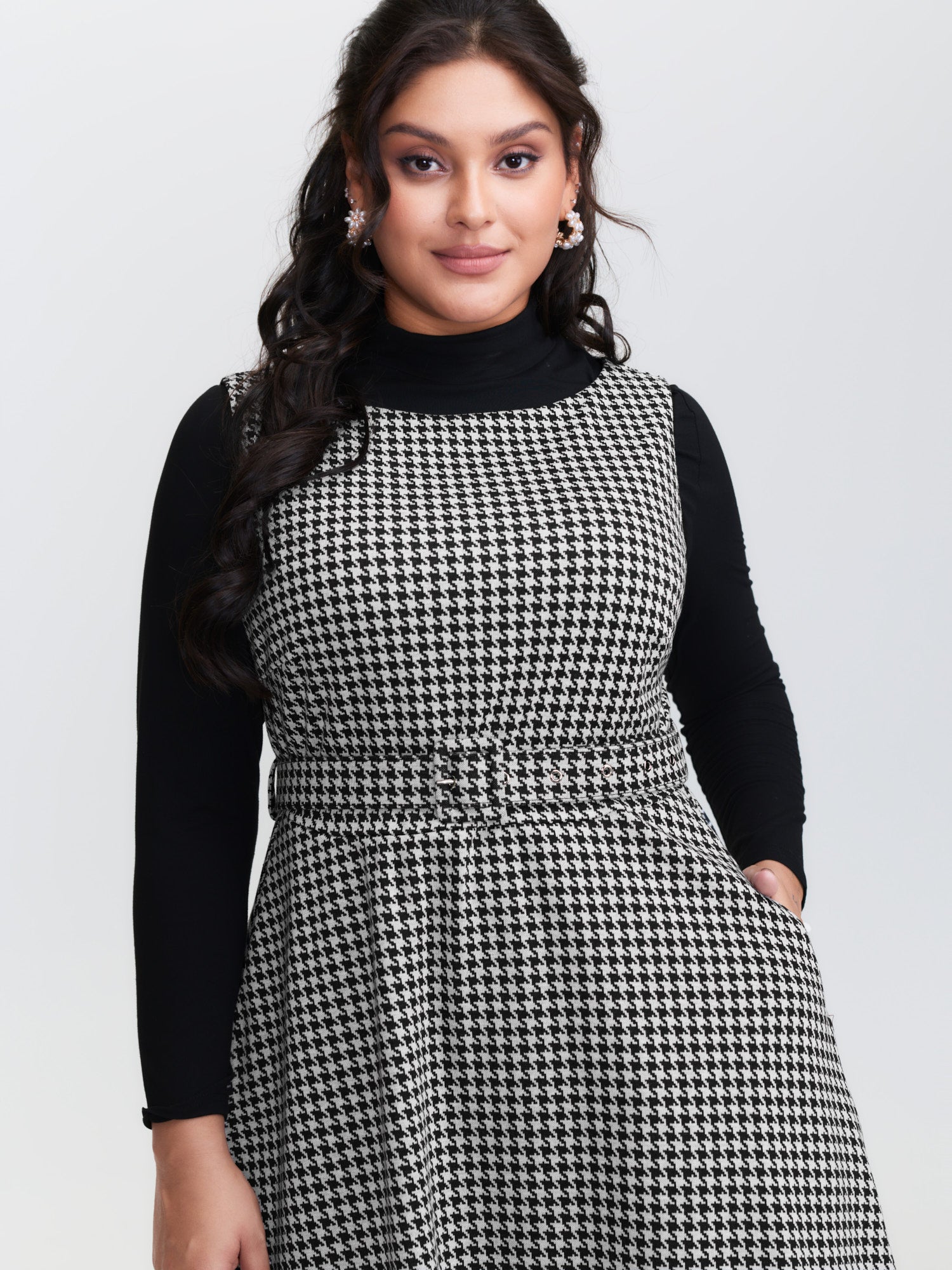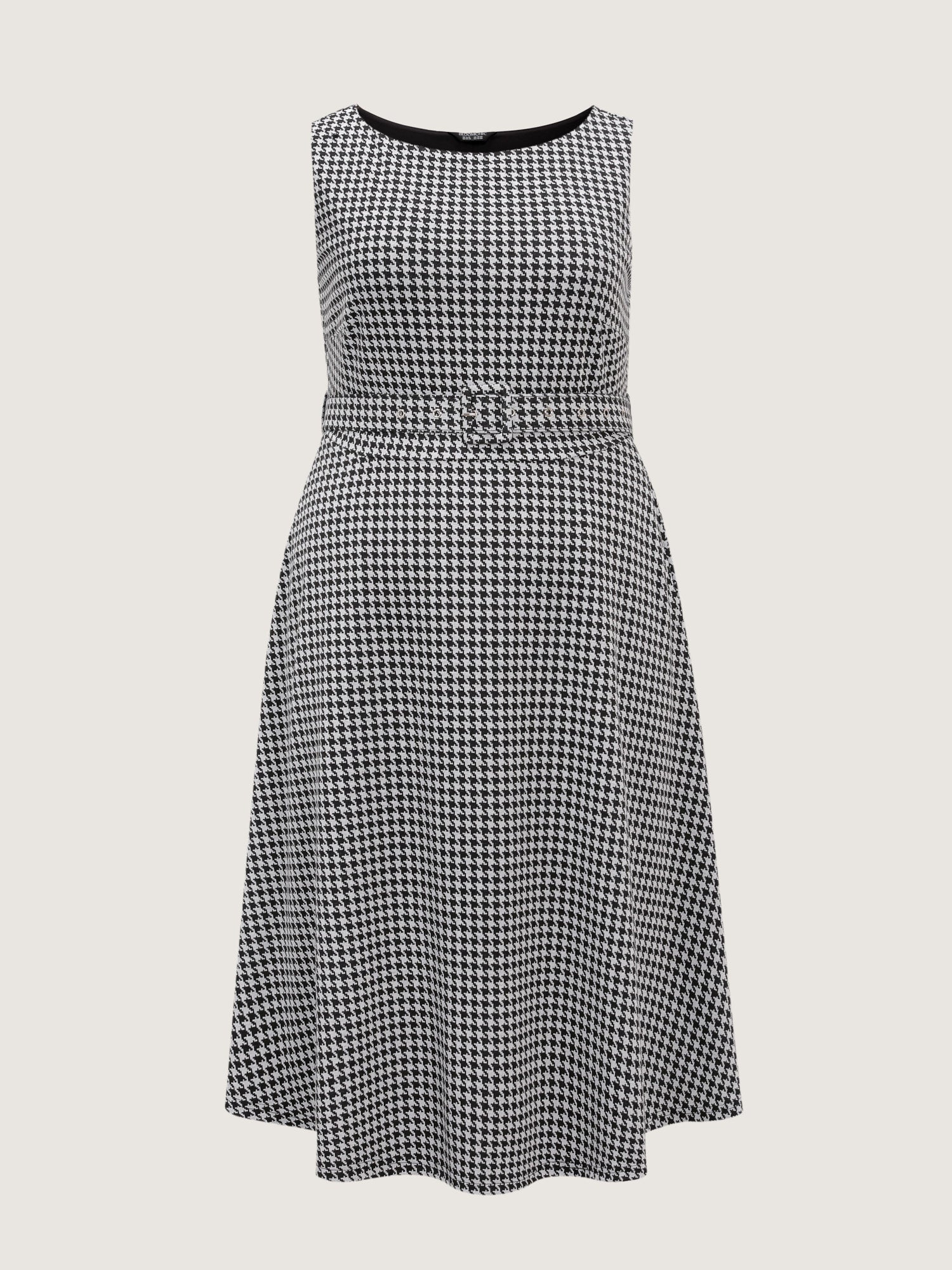 Shop Houndstooth Boat Neckline Belted Waist Midi Dress now and redefine your style with confidence at BloomChic. Tailored for mid and plus-size women. This trendy Dress, sizes 10-30. You can never go wrong with BloomChic Dresses. Color:Black;Style:Timeless;Neckline:Boat Neck;Sleeve Type:Sleeveless;Prints:Houndstooth;Pocket:Side seam pocket;Belt:Belt;Closure Type:Non