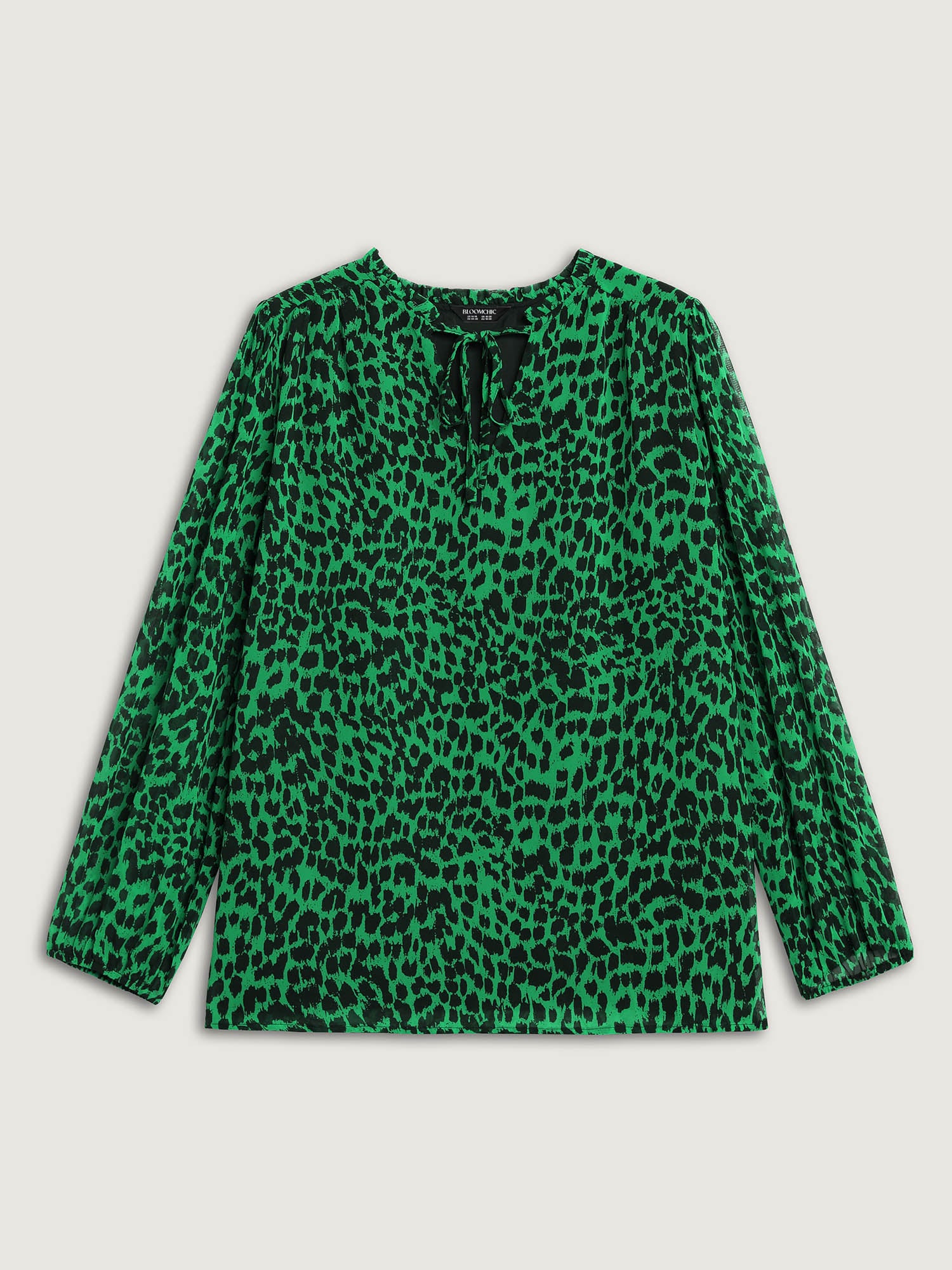 Leopard Print Tie Knot Lantern Sleeve Blouse