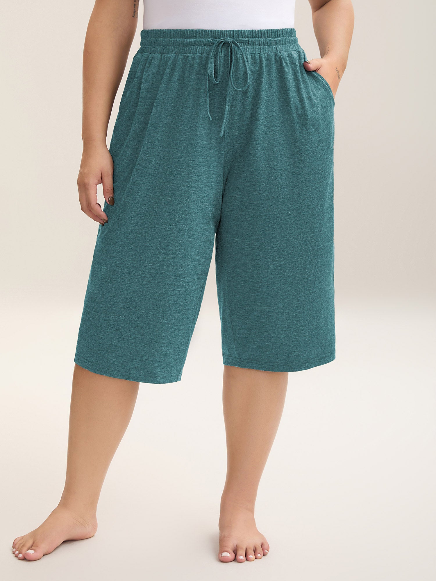 Mixed Color Knit Drawstring Loungewear Bottoms