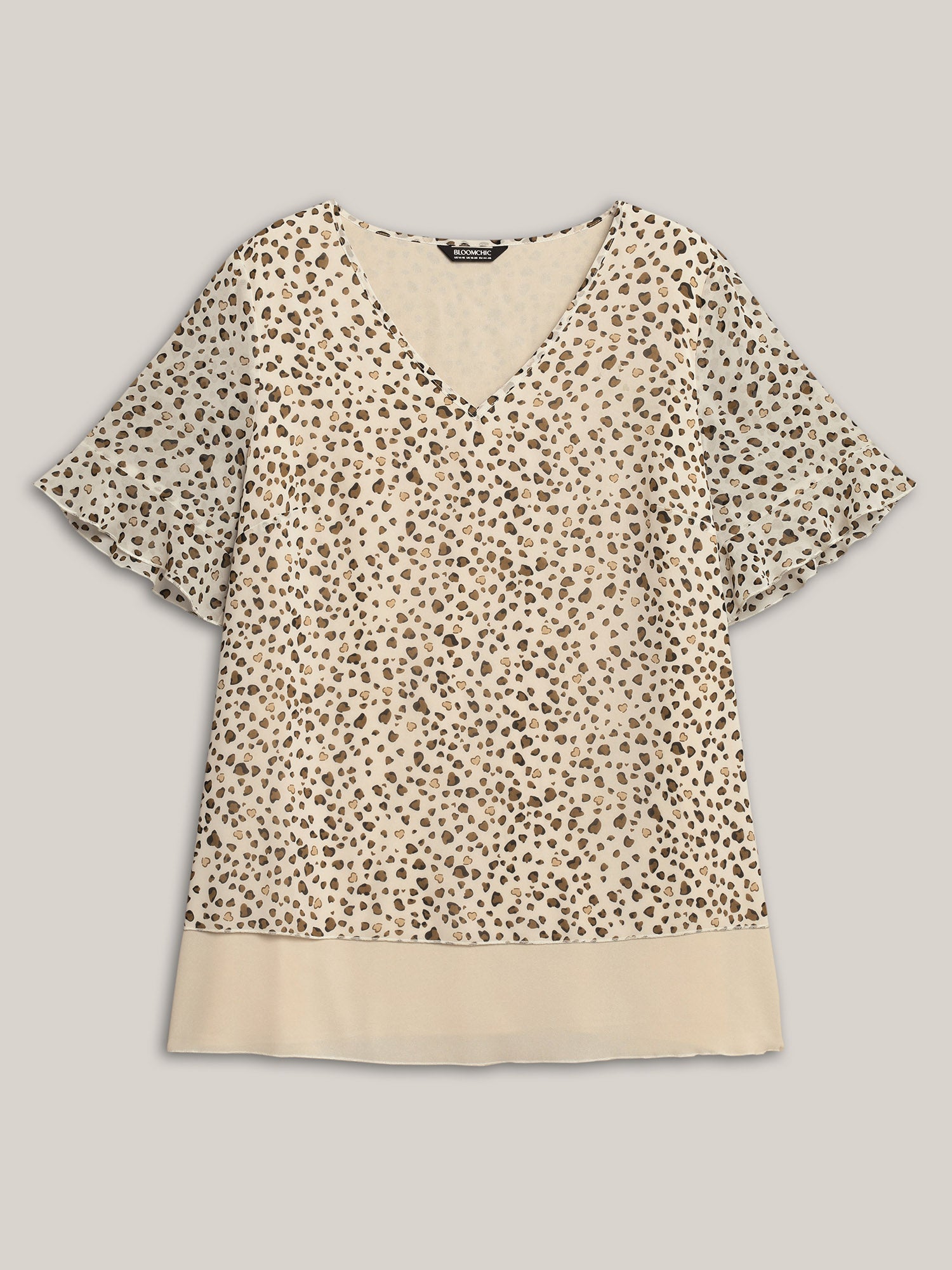 Polka Dot Print Ruffled V-Neck Layered Shirt