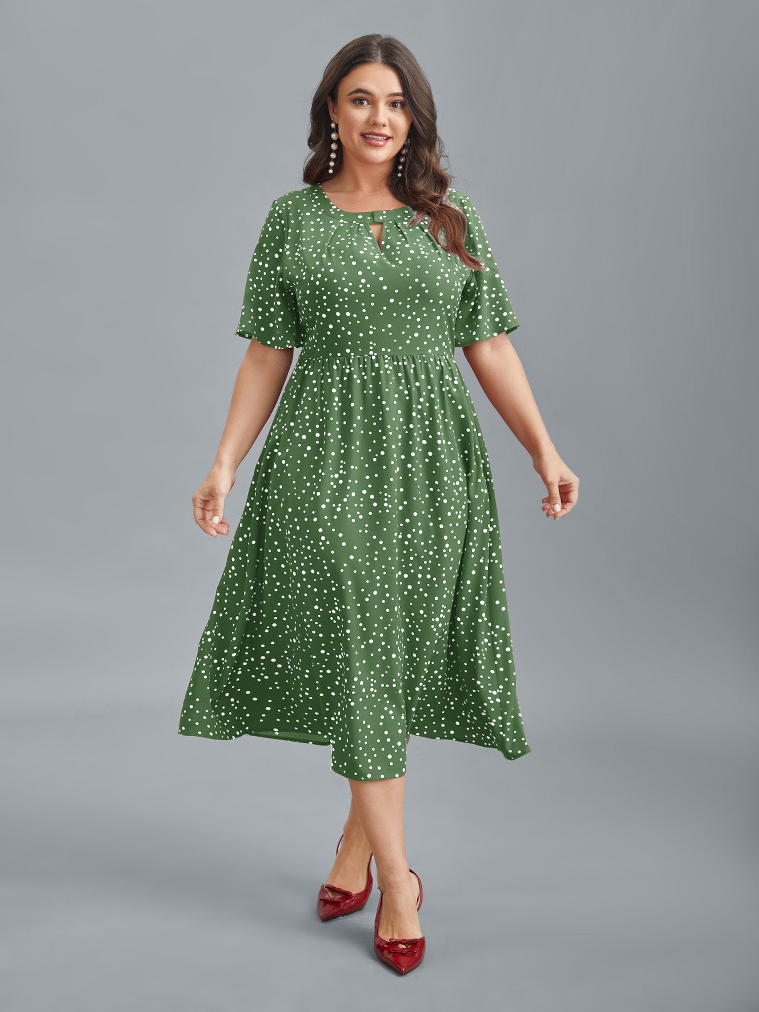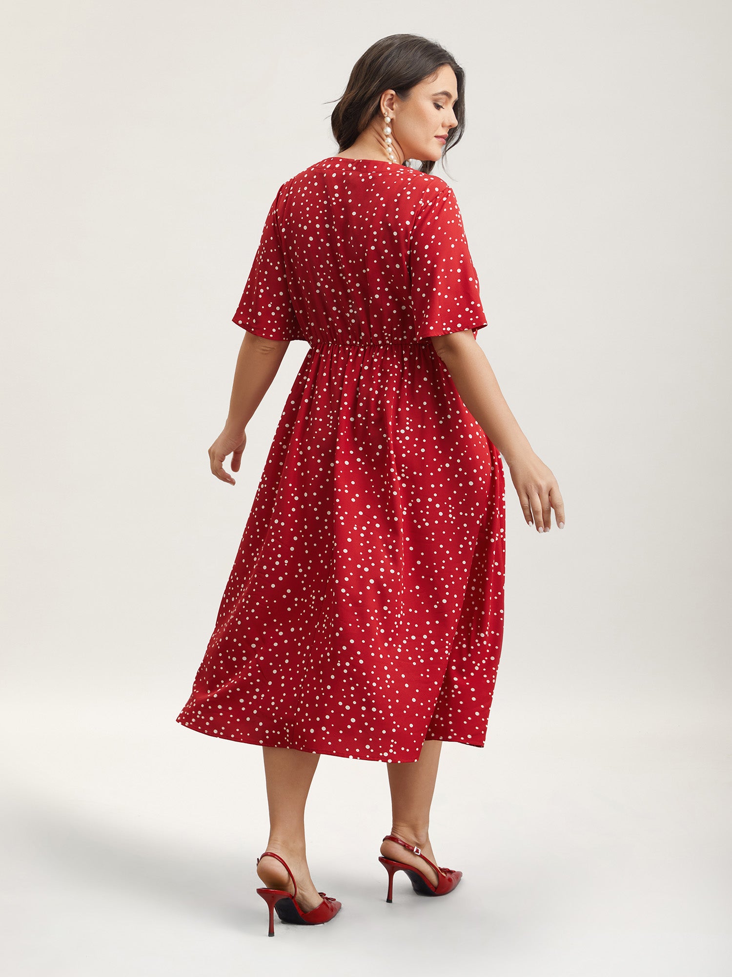 Polka Dots Print Cut-Out Flutter Sleeve Midi Dress