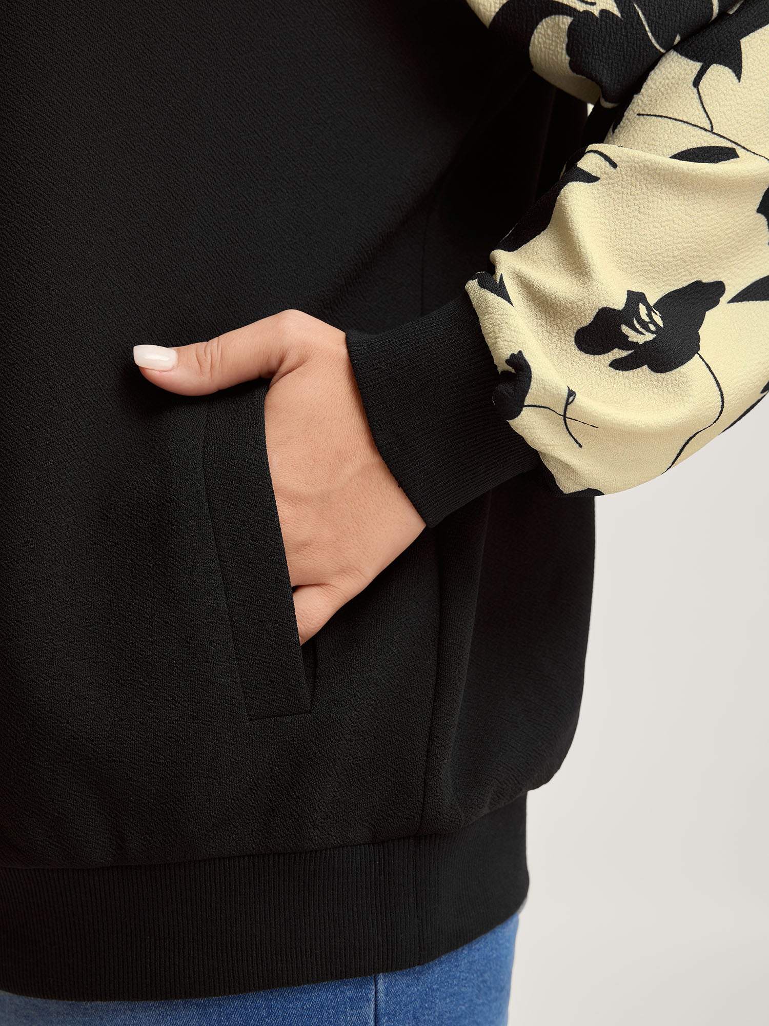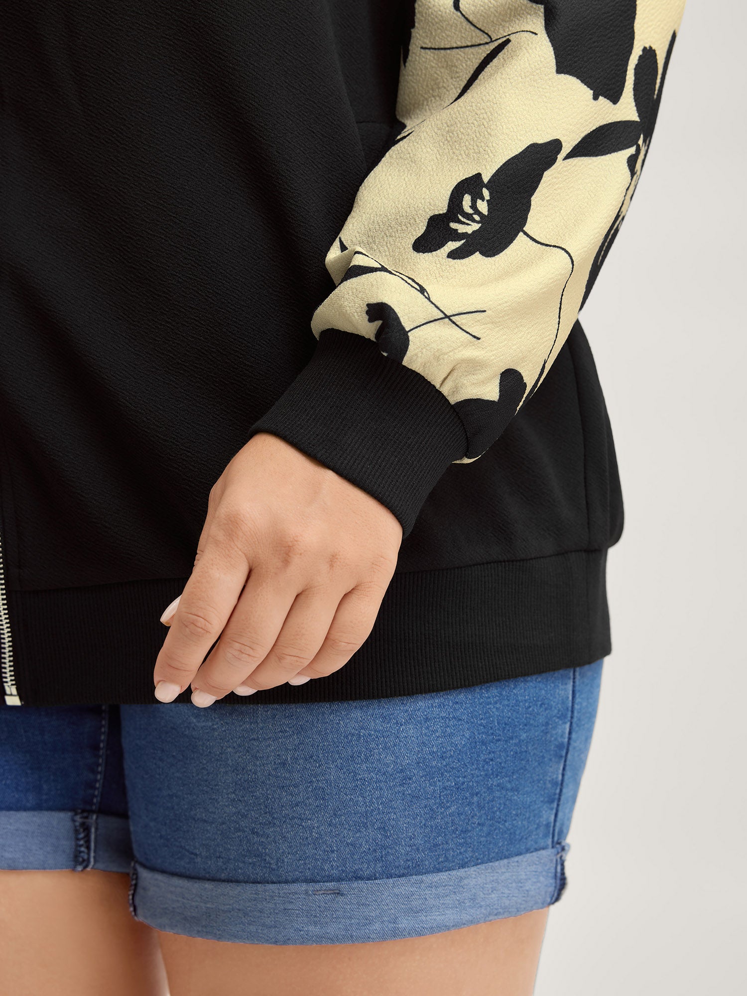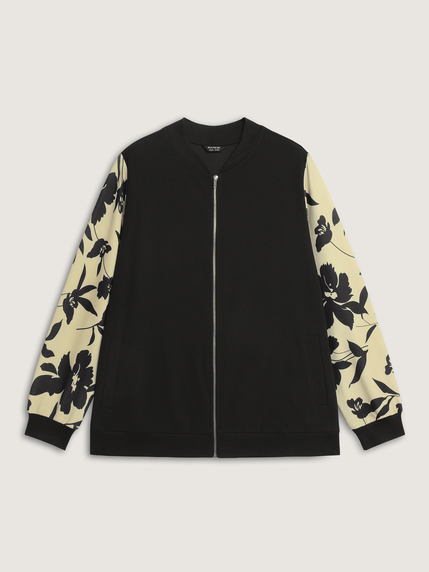 Shop Silhouette Flower Print Zipper-Front Jacket now and redefine your style with confidence at BloomChic. Tailored for mid and plus-size women. This trendy Outerwear Women, sizes 10-30. Color:Black;Prints:Floral;Details:Contrast;Pocket:Single-flap pocket;Belt:No-belt;Closure Type:Zipper;Lining:No-lining