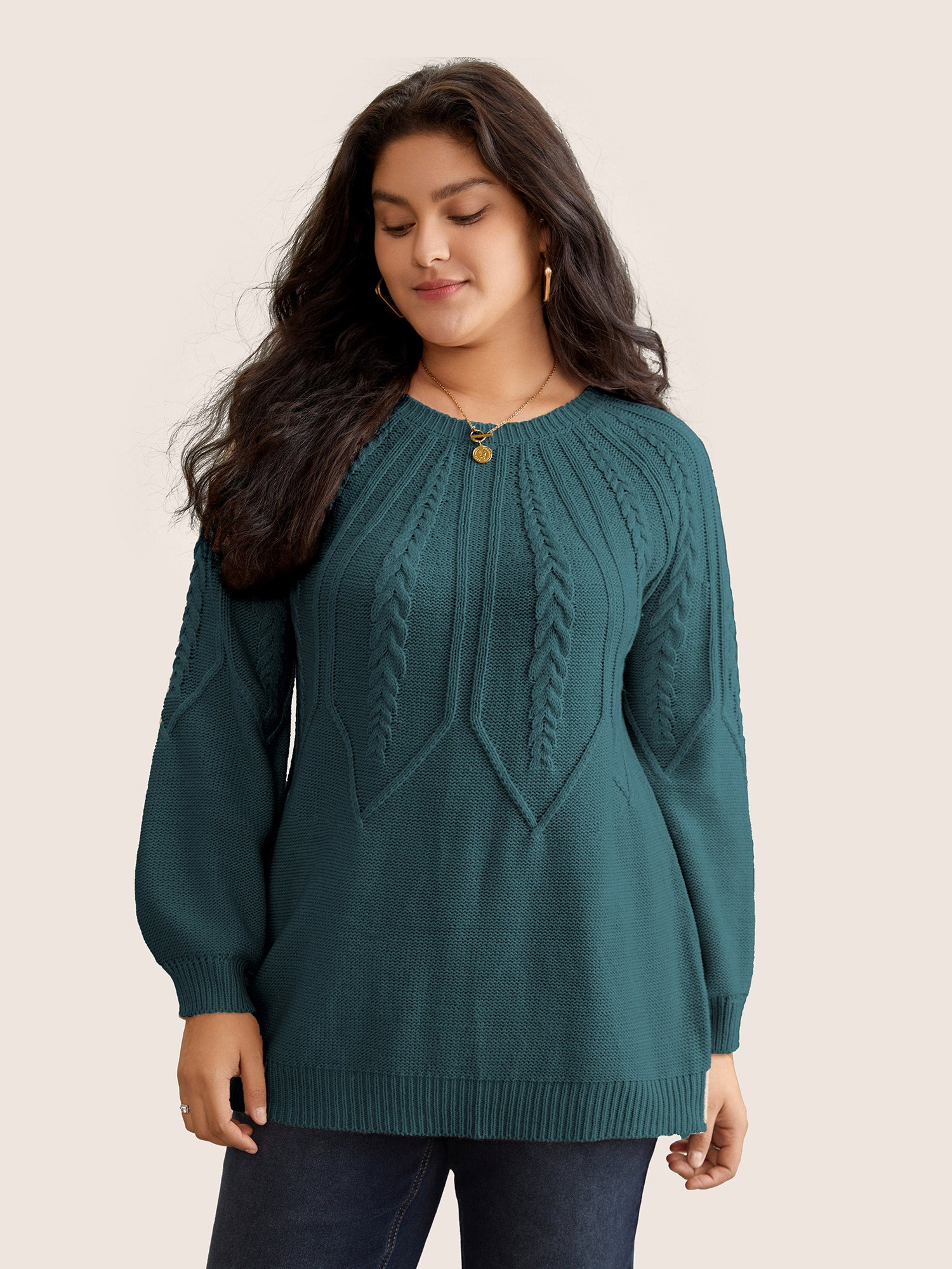 Solid Textured Lantern Sleeve Pullover