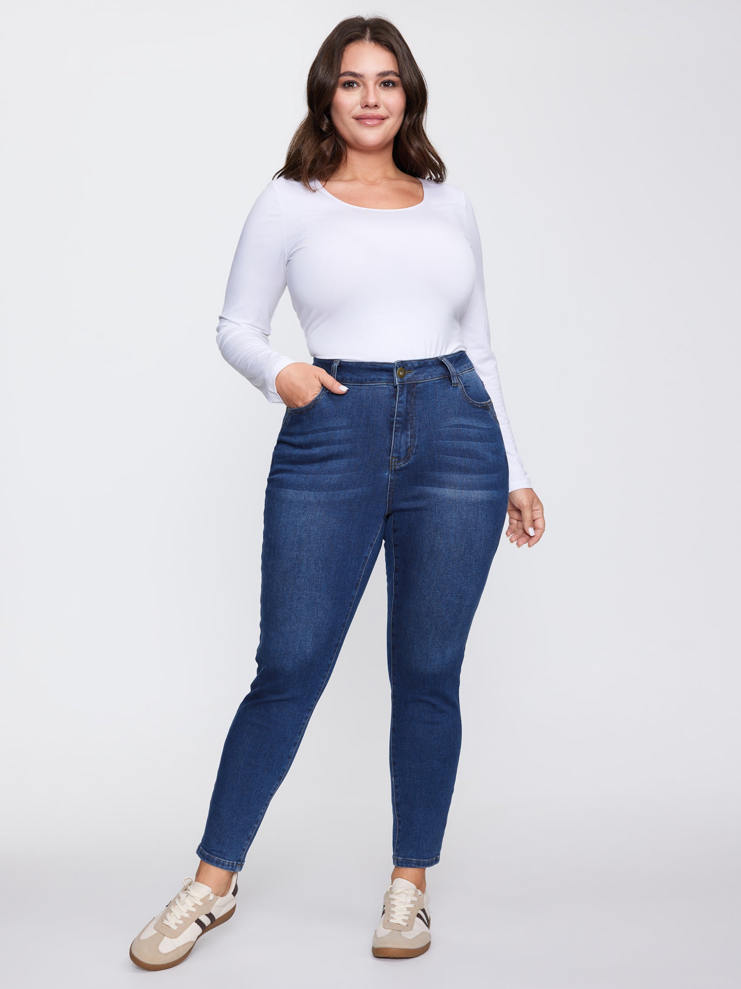 Shop Supersoft Stretchy Mid-Rise Skinny-Fit Jeans now and redefine your style with confidence at BloomChic. Tailored for mid and plus-size women. This trendy Denim Women, sizes 10-30. Color:Denimindigo;Style:Leisure;Prints:Non;Pocket:Slanted pocket;Belt:No-belt;Closure Type:Open front with closure;Wash:Medium Wash
