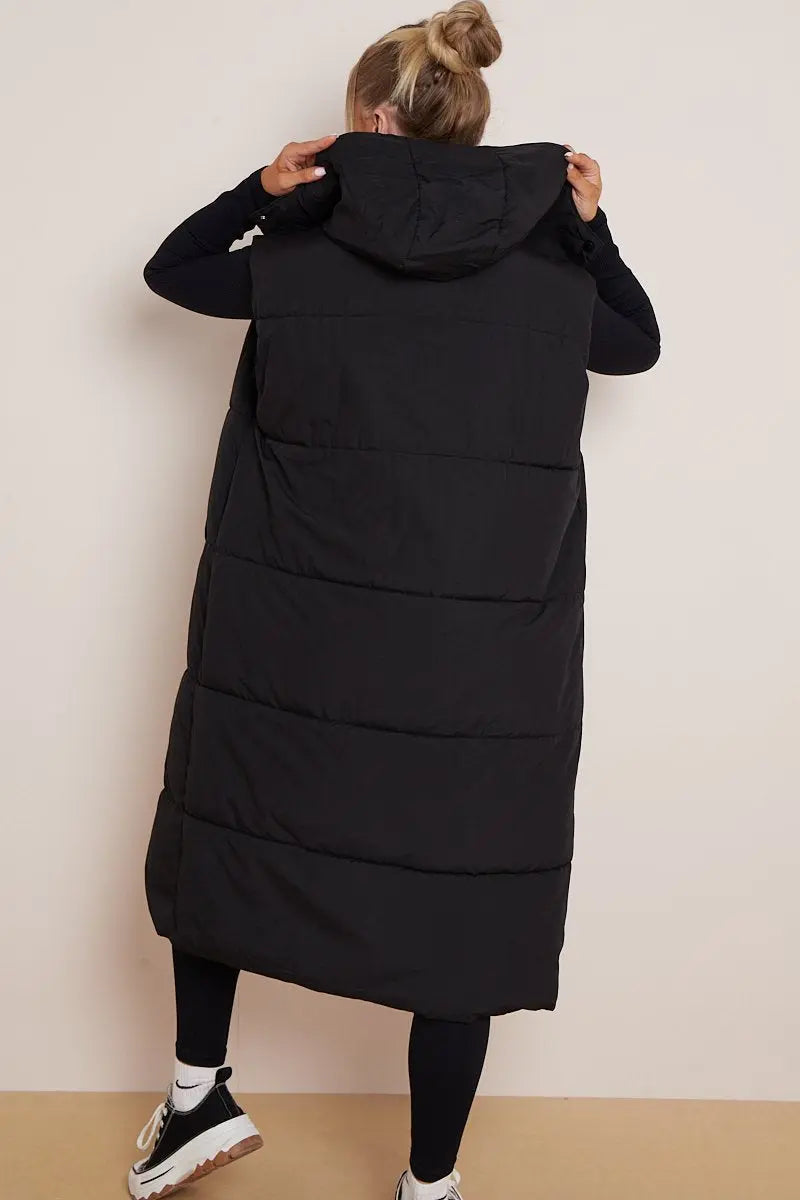 Versatile Waist Tie Hooded Zip-Up Thermal Gilet