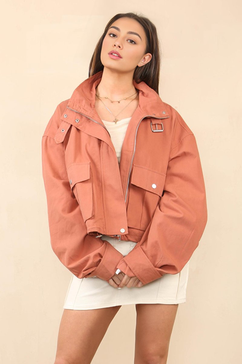 Elevate your wardrobe with this effortlessly stylish piece that��s a must-have! �With its chic stand collar and elegant buckle detail, this jacket combines fashion and function.�