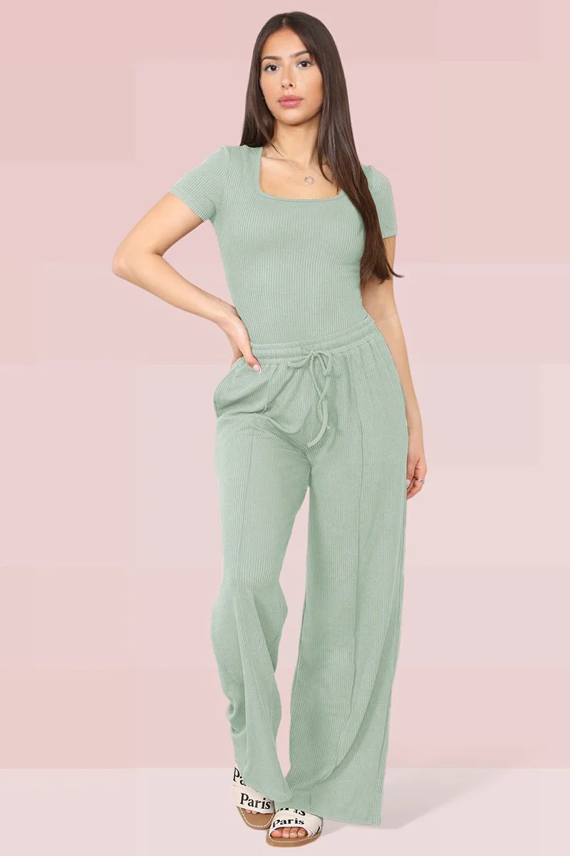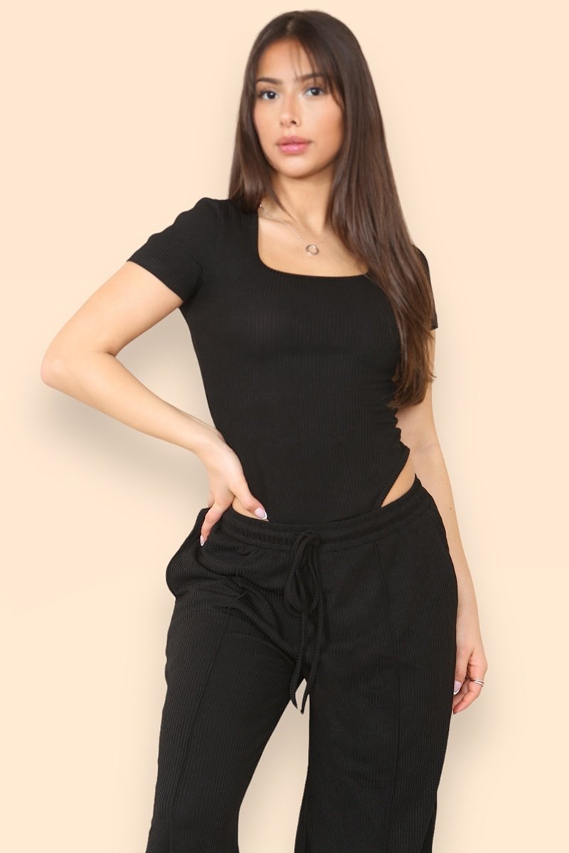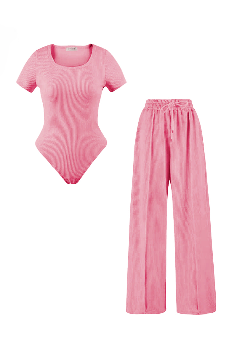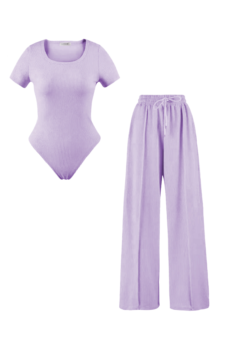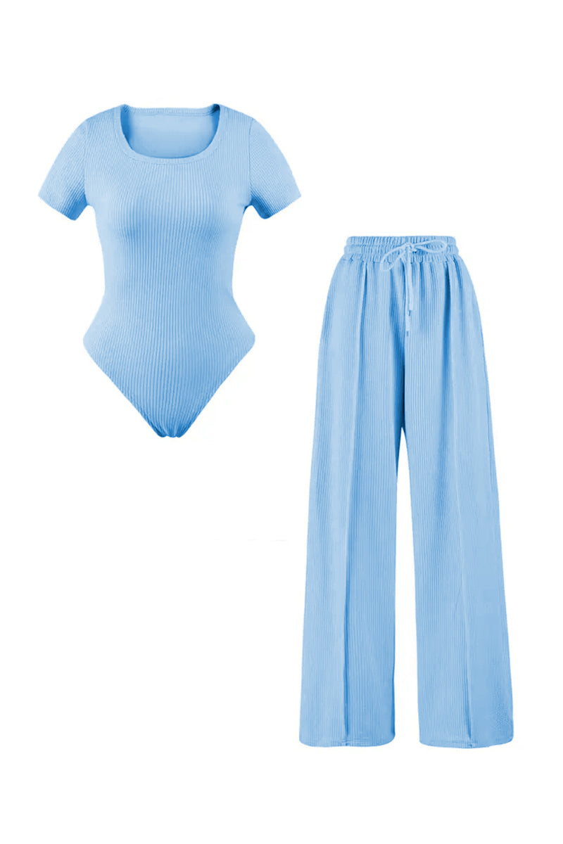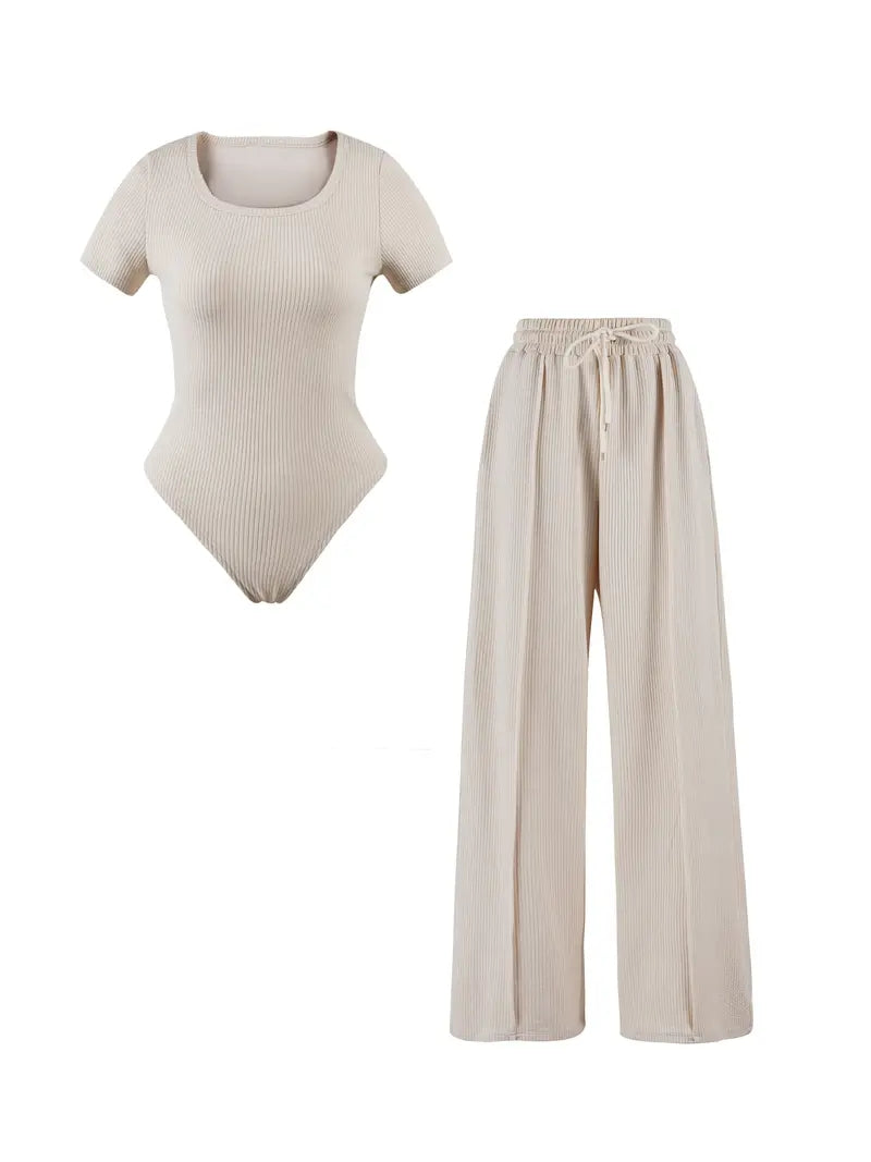 The bodysuit features a delicate design that hugs your curves, while the trousers come with an elasticated waistband and a stylish drawstring for the perfect fit. Crafted from soft fabric, this outfit promises comfort without compromising on style.