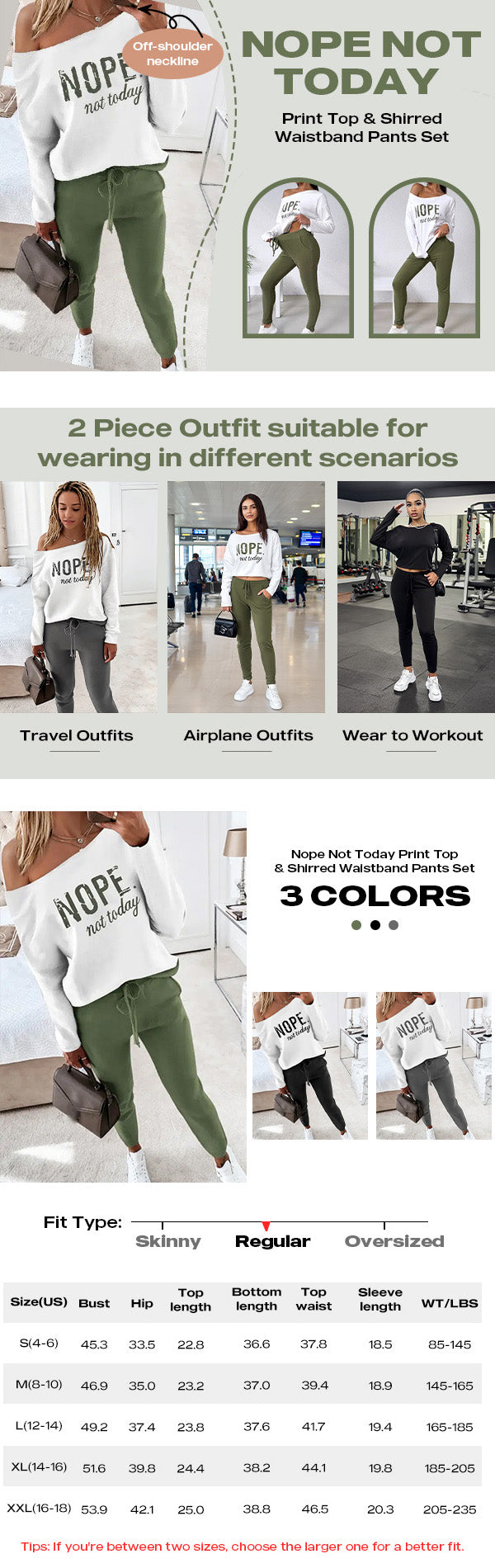 Silhouette & Fit �� The slim-fit pants with elastic drawstring waist and relaxed pullover top create a flattering yet comfortable silhouette.