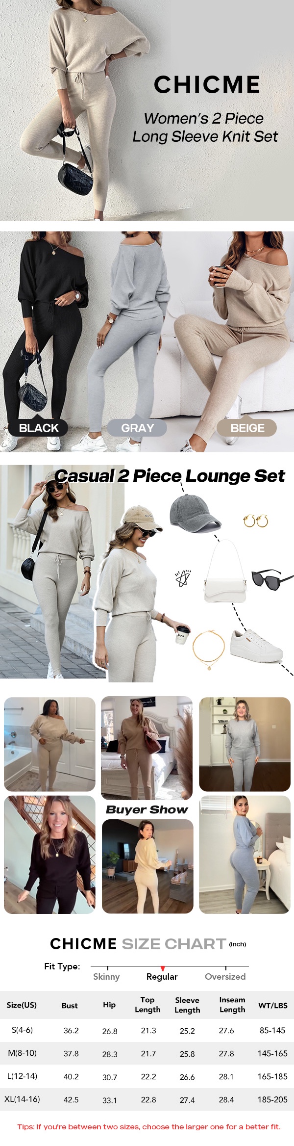 - Silhouette & Fit �� Loose pullover top with skew neckline and slim-fit pants with high waist create a flattering, balanced silhouette suitable for various body types.