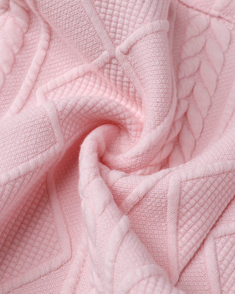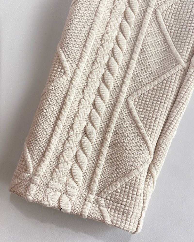 Metal Double Breasted Decor Stand Collar Argyle & Cable Textured Coat