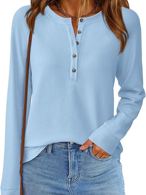 Womens Long Sleeve Waffle Knit Shirts Casual Fall Clothes
