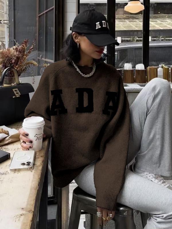 Women's Long Sleeve Knit Sweater, Loose-Fitting Round Neck Pullover, Soft Comfortable Elegant Casual Fashion Top for Fall & Winter