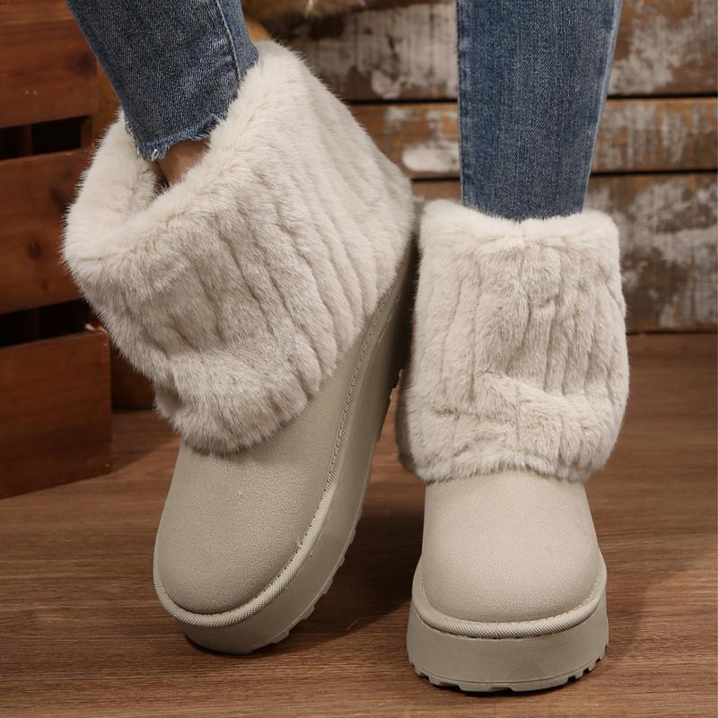 "Womens snow boots made with fluffy faux lining for ultimate warmth and comfort during cold winter days.Short design perfect for everyday wear and casual errands, but with a platform for added style.Durable materials and slip-resistant sole helps you trek through snow and ice without worry.Available in multiple colors to match any outfit or personal style.Great gift idea for any woman in need of a reliable and stylish pair of snow boots."
