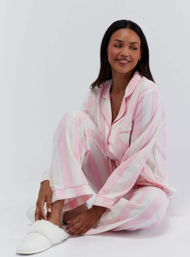 Boux Avenue Wide Stripe Cotton Pyjamas in a Bag Long Sleeve Top & Trousers Sleepwear