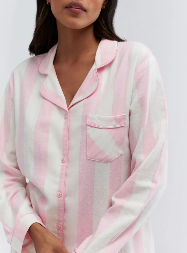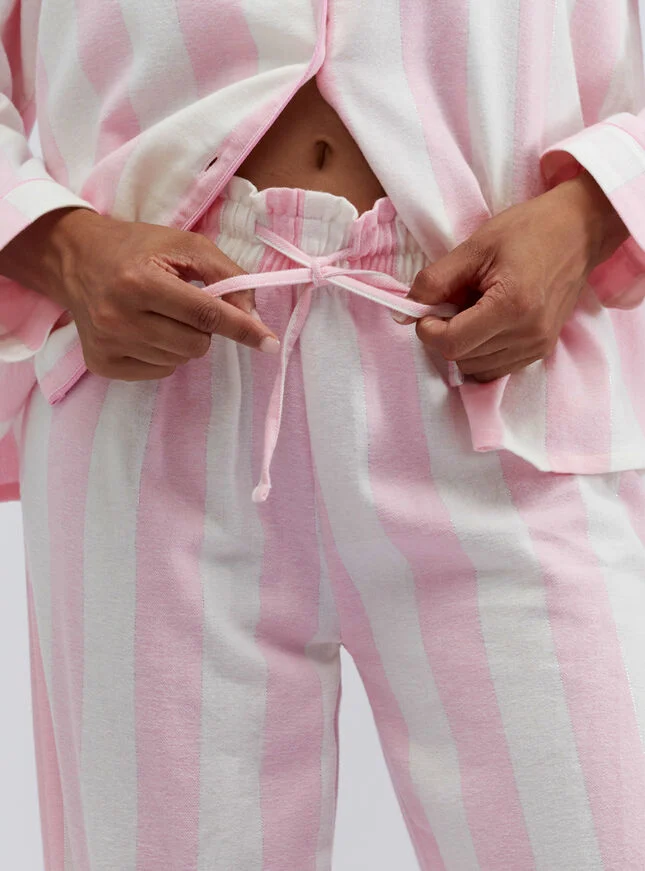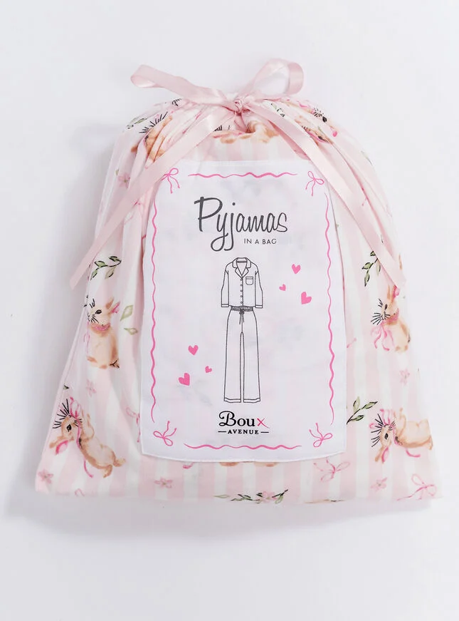 From bedtime to brunch, relax in cosy comfort with our soft cotton striped pyjamas in a bag, accented with a delicate shimmer! Packaged in a matching bag, they're a cozy indulgence for you or a heartfelt gift for someone you love.