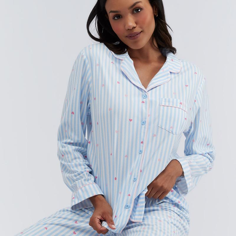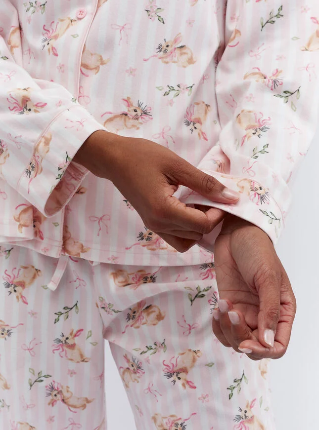 From bedtime to brunch, relax in cosy comfort with our soft cotton striped pyjamas in a bag, accented with a delicate shimmer! Packaged in a matching bag, they're a cozy indulgence for you or a heartfelt gift for someone you love.