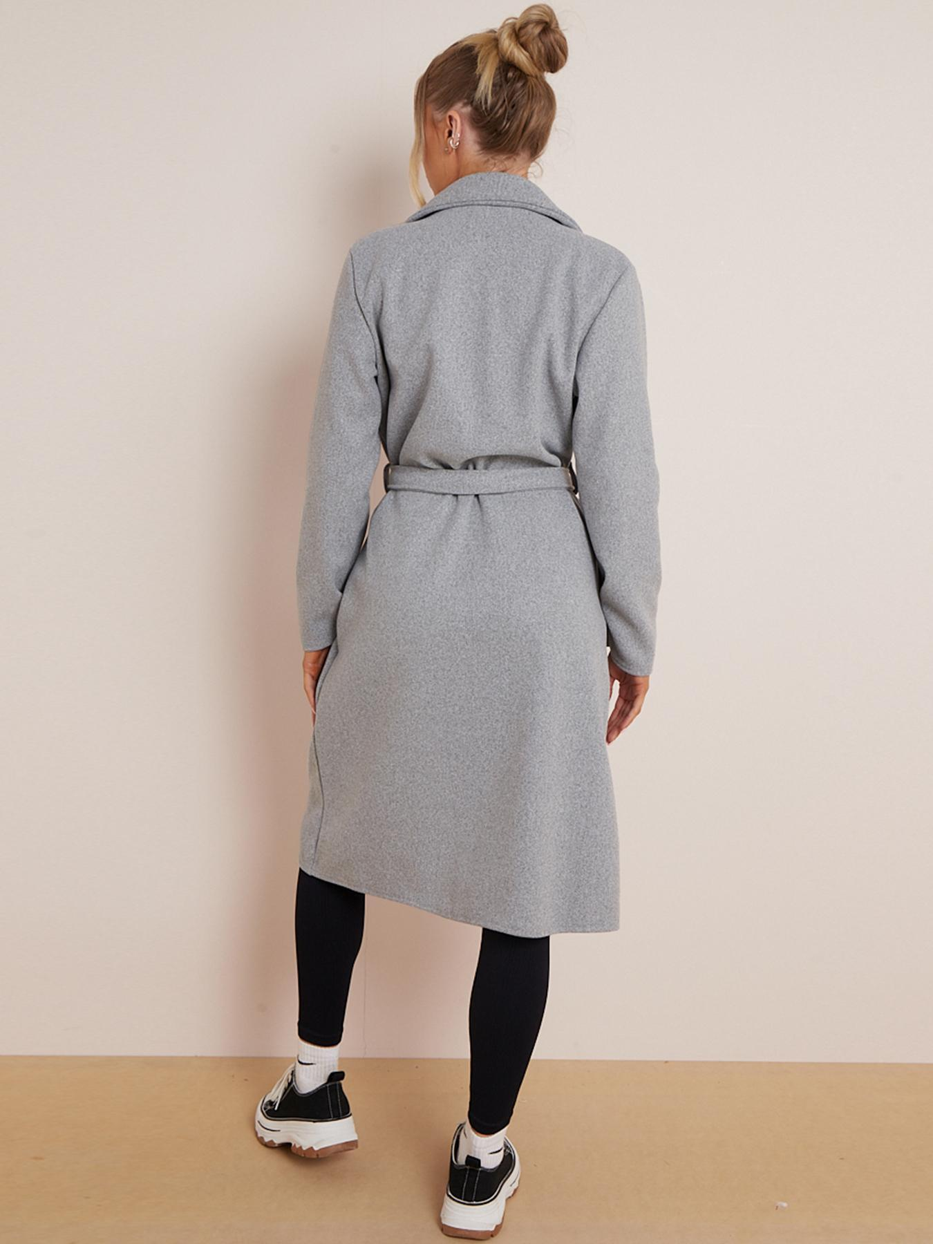 Classy Notch Lapel Double Breasted Waist Tie Thermal Coat