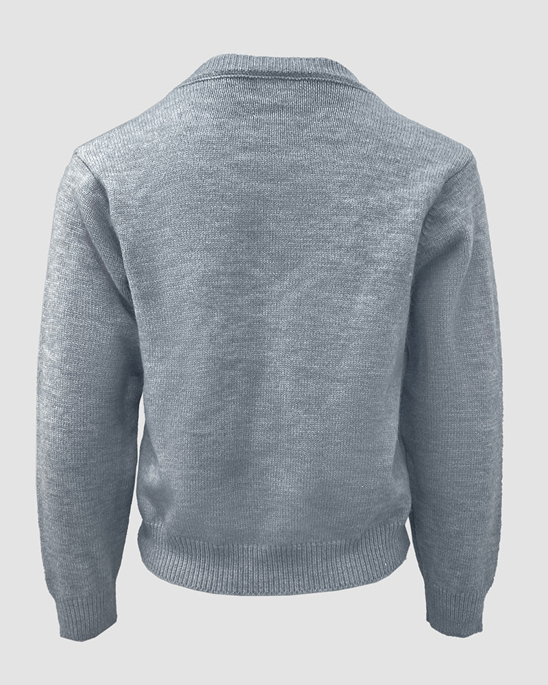 • Floral Applique & Pearls Decor Round Neck Single Breasted Knit Cardigan Casual Crop Sweater Coat