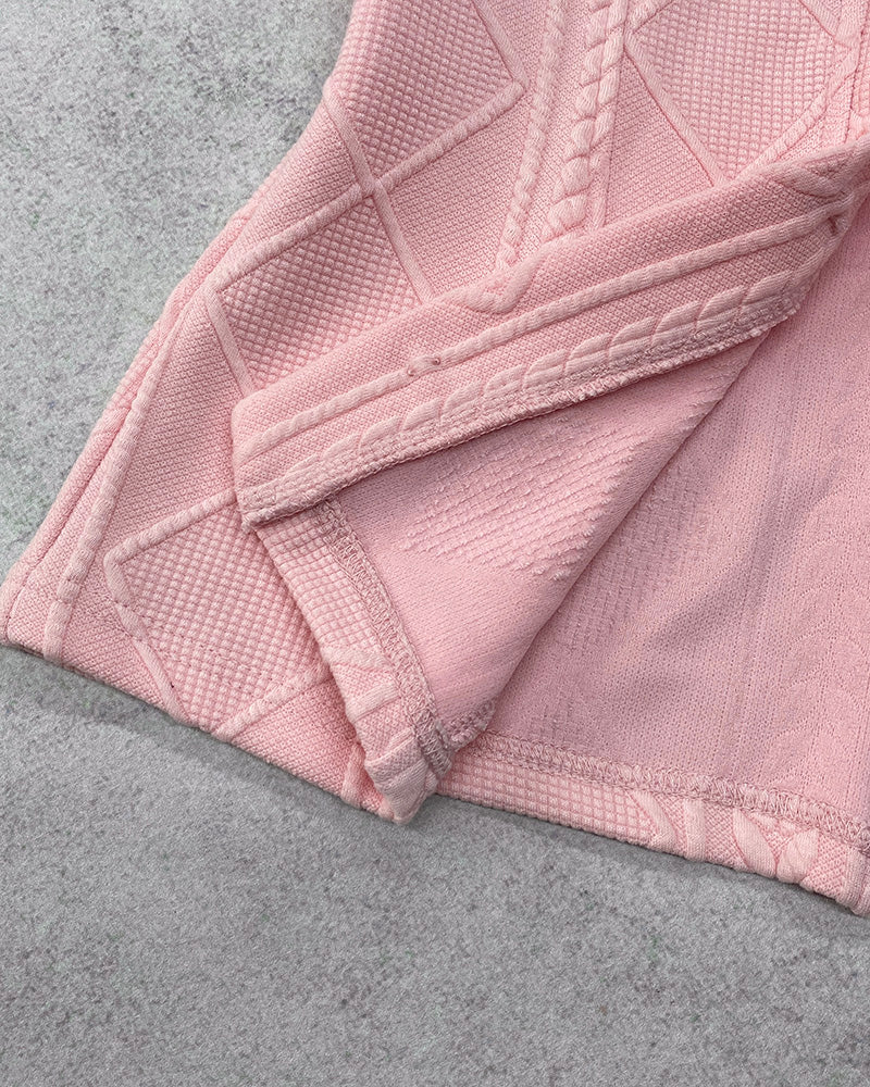 • Metal Double Breasted Decor Stand Collar Argyle & Cable Textured Coat