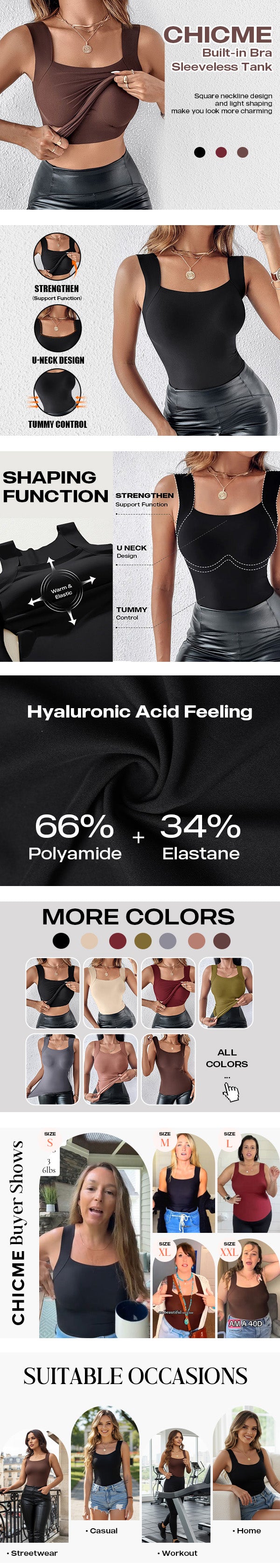 Silhouette & Fit: Skinny, body-hugging design shapes and lifts the bust while providing a smooth, no-show fit, ideal for layering under tops or jackets.