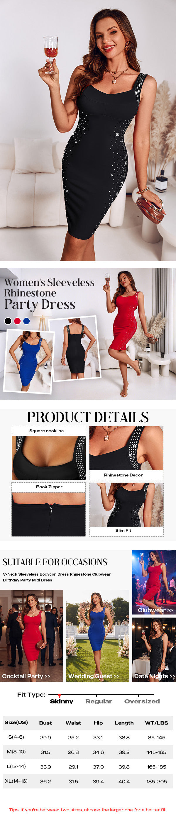 Stylish Rhinestone Accents: Adorned with sparkling rhinestones, this glitter dress adds a touch of glamour, making it ideal for women's club & night out dresses and graduation dresses.