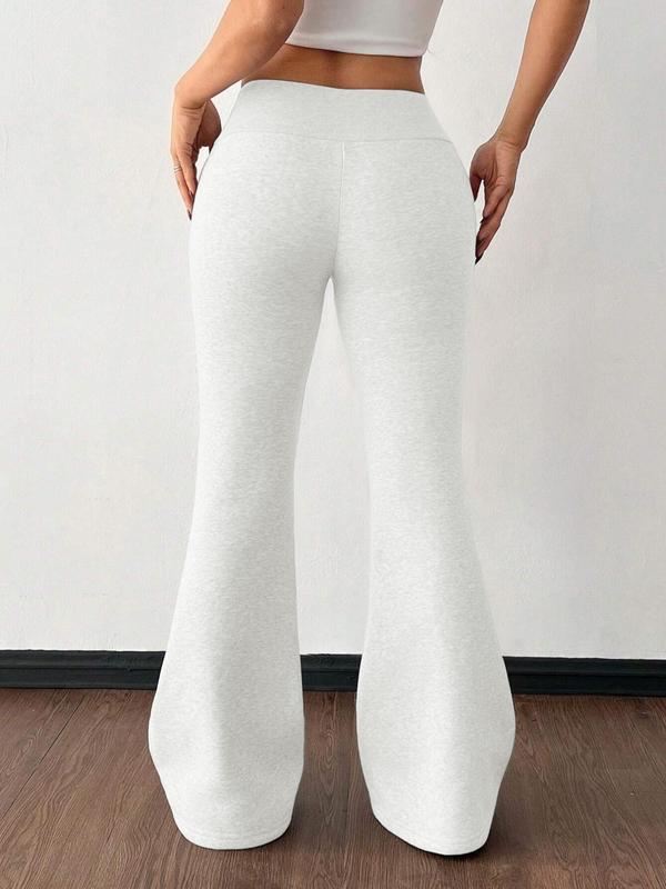 Women's Casual Low Waist Drawstring Elastic Sports Pants, Warm Thermal Lining, Suitable for Autumn Winter, Flare Leg Design, Sports Bottoms
