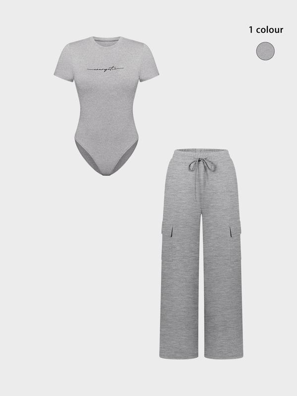 Effortlessly chic and endlessly comfortable, this two-piece outfit is designed to make every day feel easy and stylish. Featuring a soft short-sleeve bodysuit paired with flowy long pants, it��s your perfect all-season match �� cool enough for spring, cozy enough for fall. ������