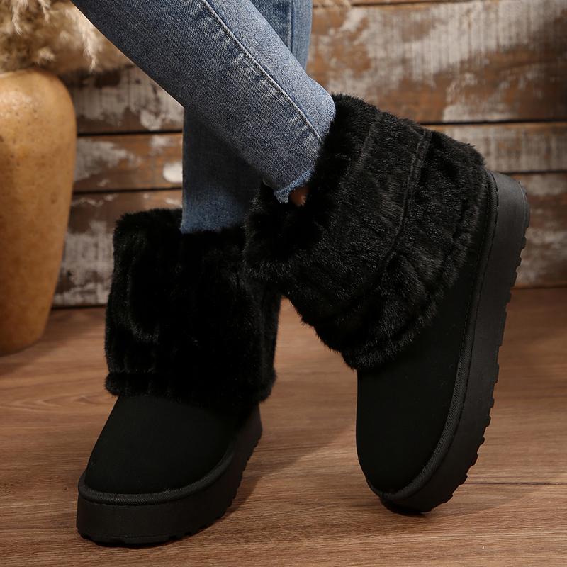 "Womens snow boots made with fluffy faux lining for ultimate warmth and comfort during cold winter days.Short design perfect for everyday wear and casual errands, but with a platform for added style.Durable materials and slip-resistant sole helps you trek through snow and ice without worry.Available in multiple colors to match any outfit or personal style.Great gift idea for any woman in need of a reliable and stylish pair of snow boots."