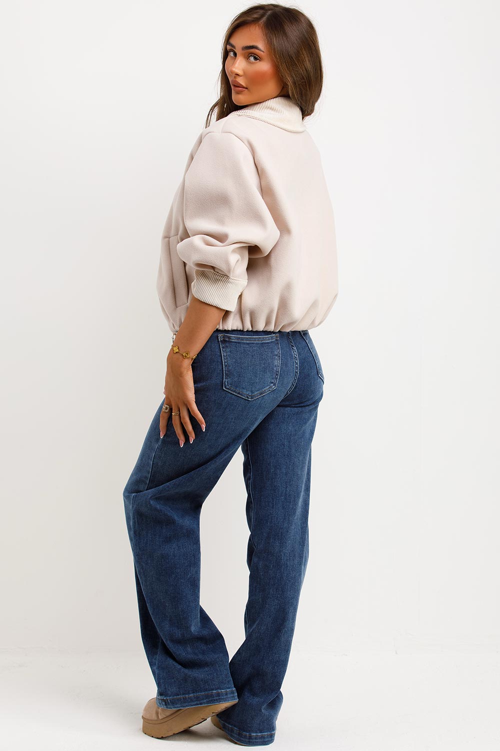 Short Bomber Jacket With Collar Beige
