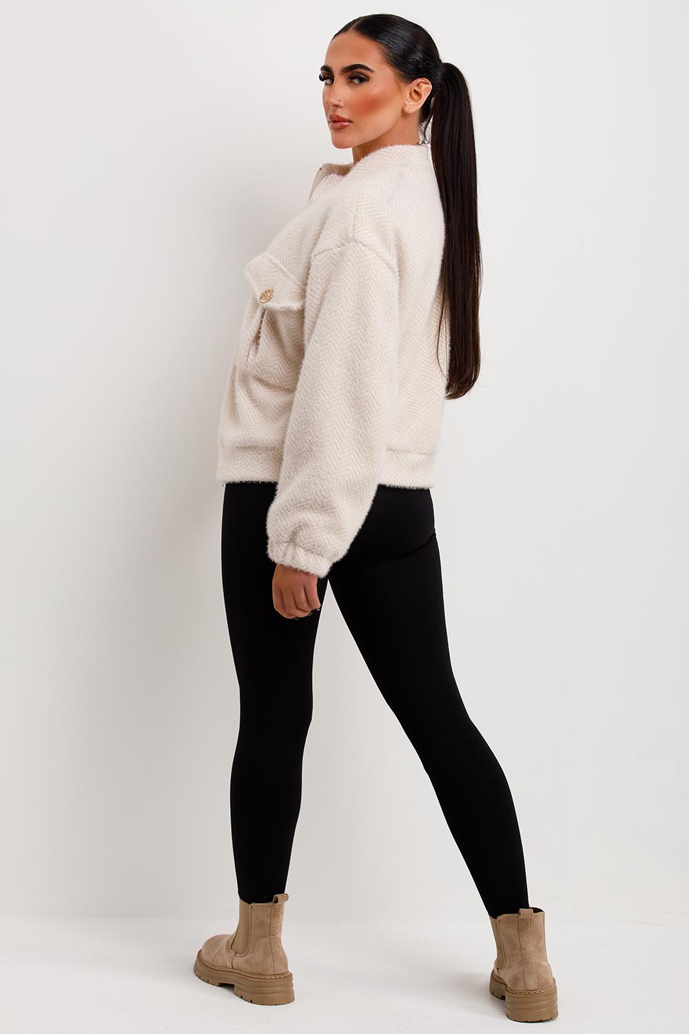 Aviator bomber jacket textured. This textured aviator bomber jacket is going to refresh your new season wardrobe. Featuring textured fabric aviator bomber jacket with pocket detail Style this aviator jacket with matching accessories to complete the look we are loving. This aviator bomber jacket is also available in other colours.