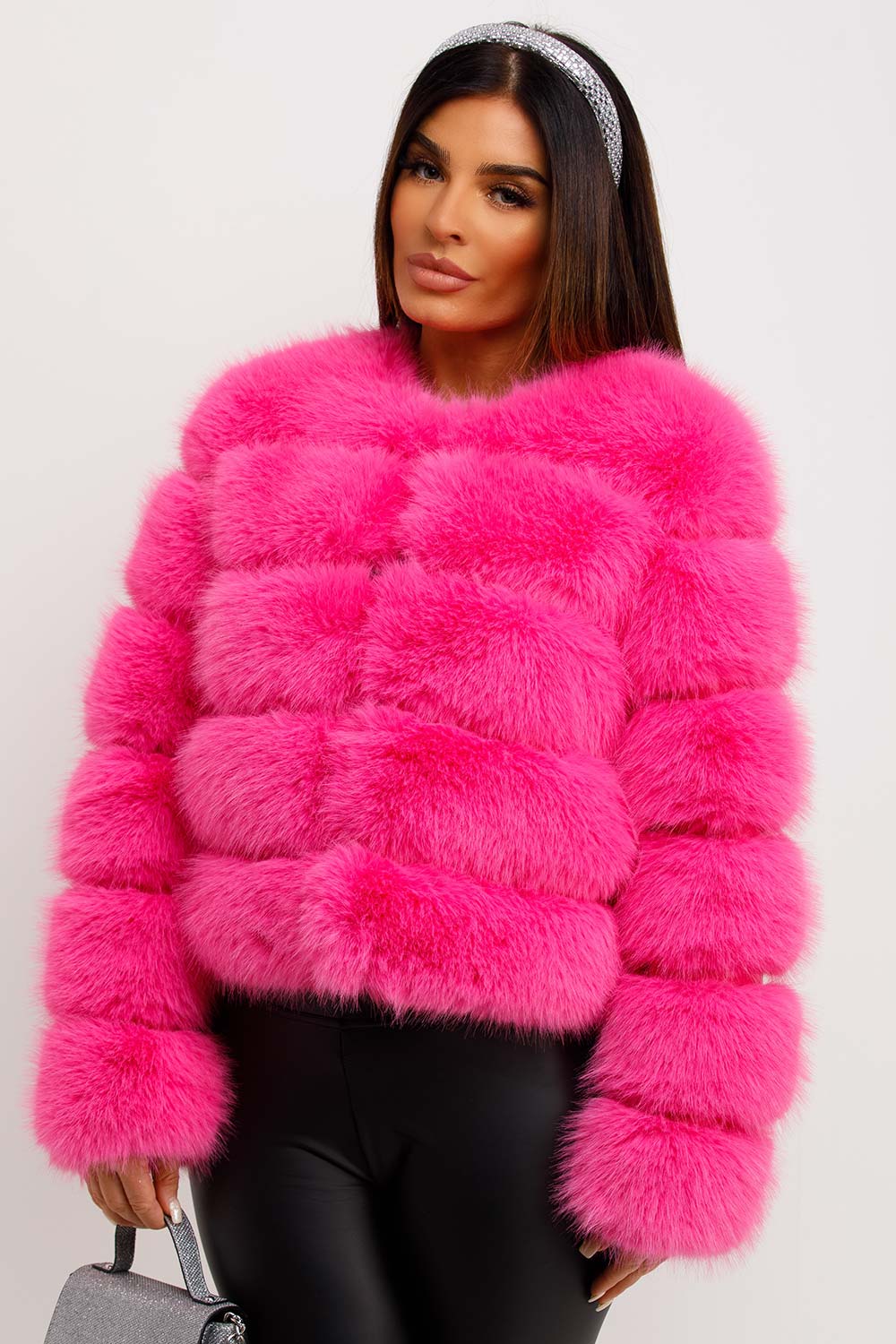 Faux fur coat. This fur bubble coat is going to earn you all the style points in this new season. Featuring luxury faux fur bubble coat with hook fastening and side pockets. This fur coat is vegan friendly. Style this faux fur bubble coat with any outfit to complete the cute cosy look. This faux fur coat is also available in different colours.