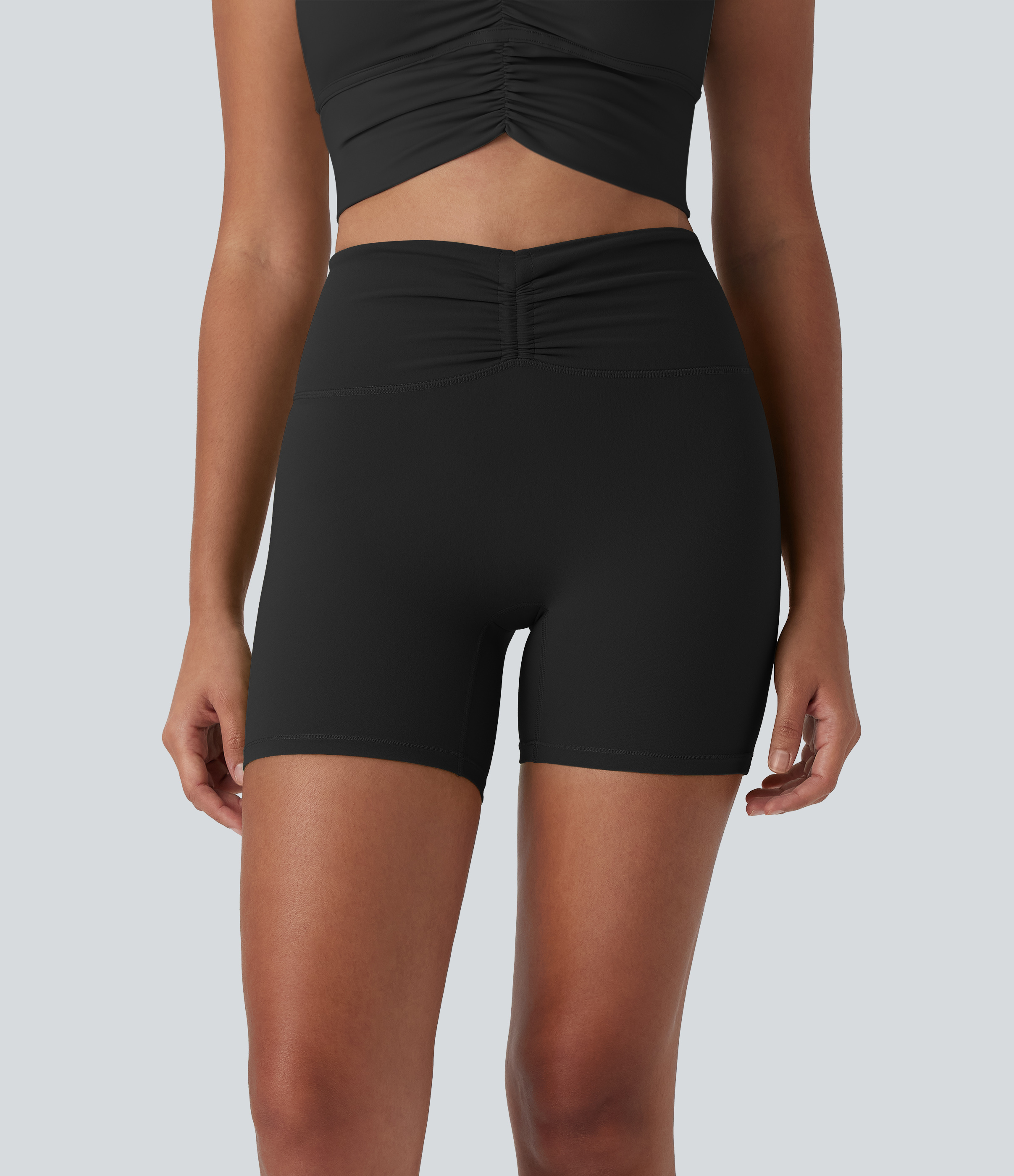 Halara UltraSculptTM High Waisted Drawstring Ruched Yoga Biker Shorts 5'' with Pocket