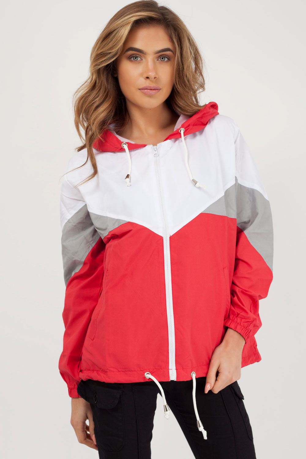 Styledup looks in this contrast colour festival light weight jacket. Featuring a drawstring hood, zip front. Wear it with a co-ord and some boots for a festival look that will have all eyes on you! Colours available , , ,.