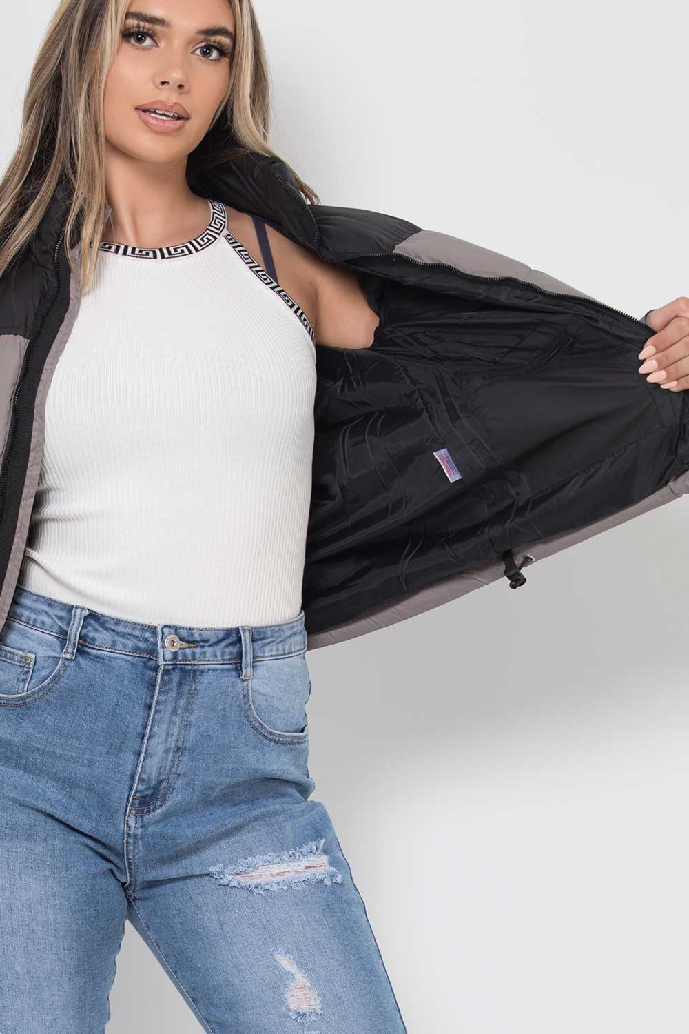 Puffer Jacket Grey Colour Block