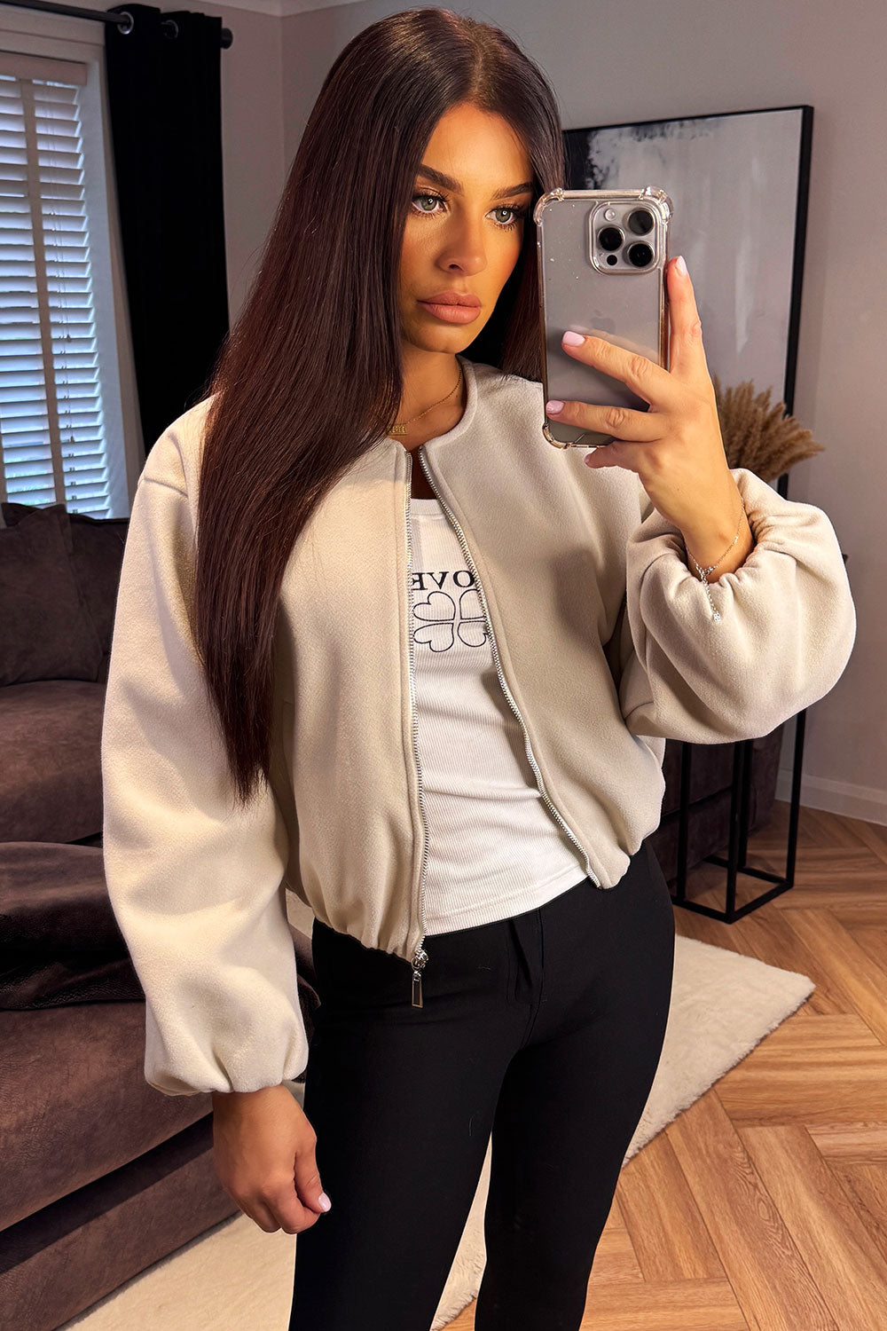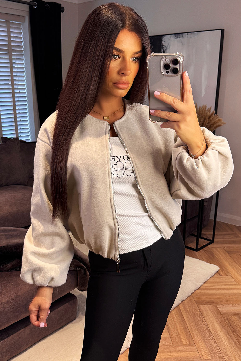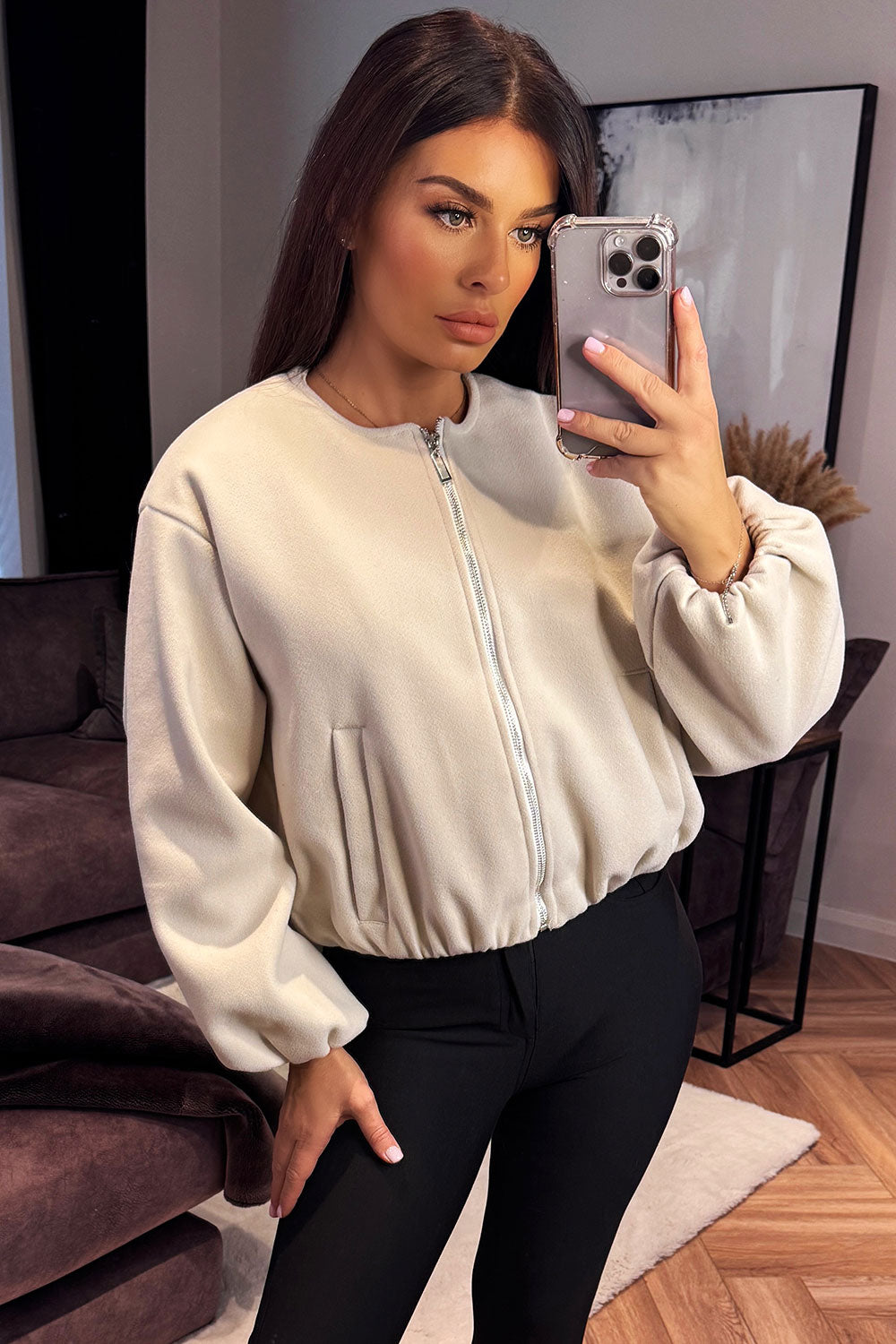 Soft Bomber Jacket Beige