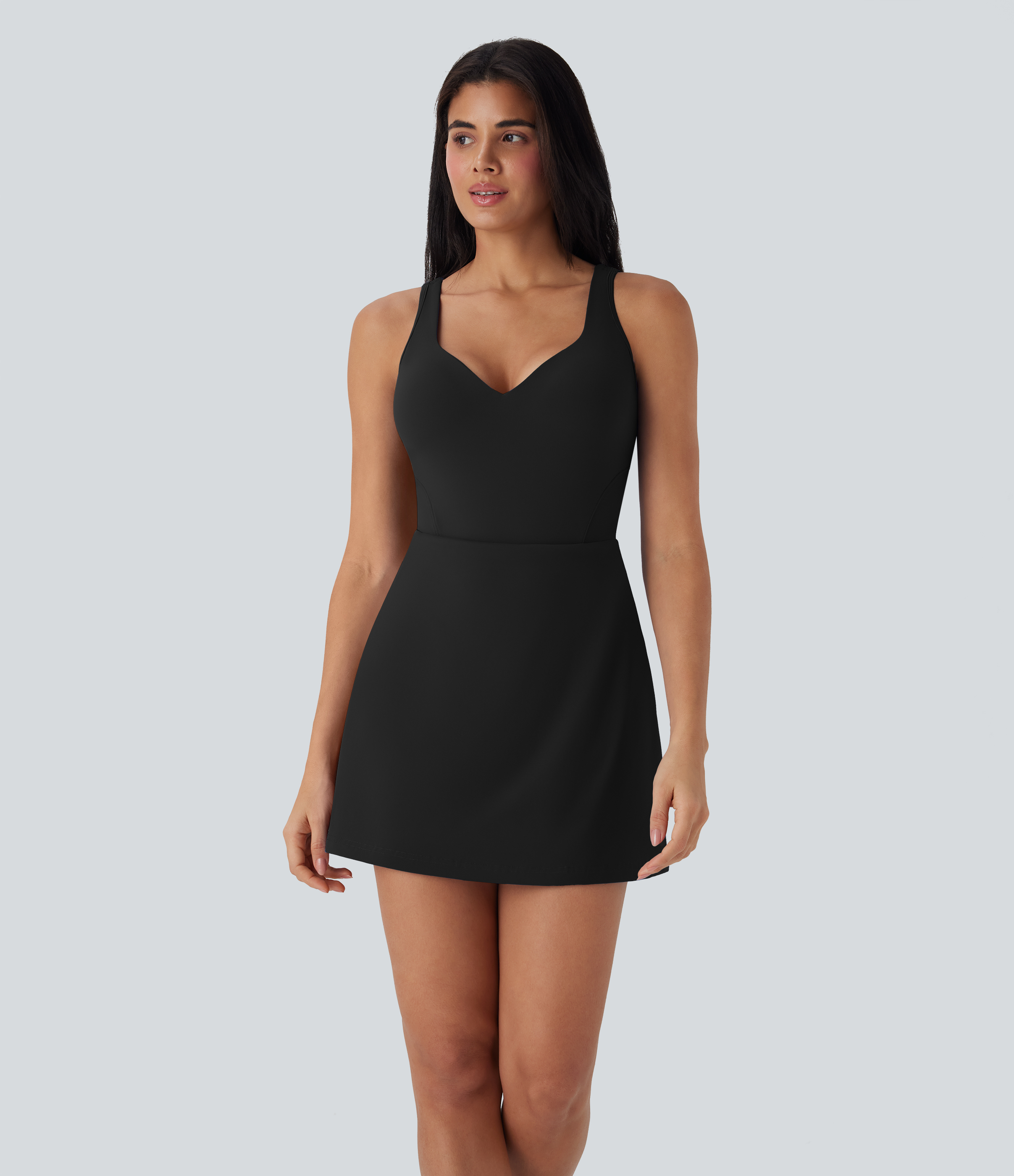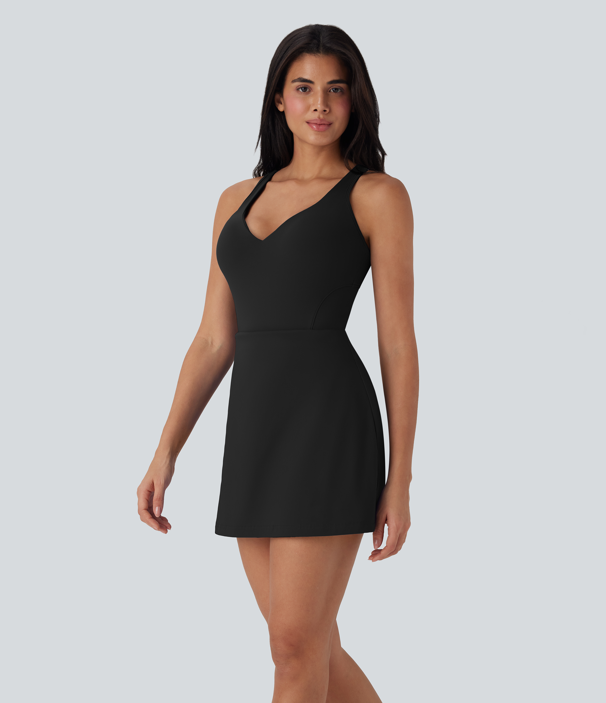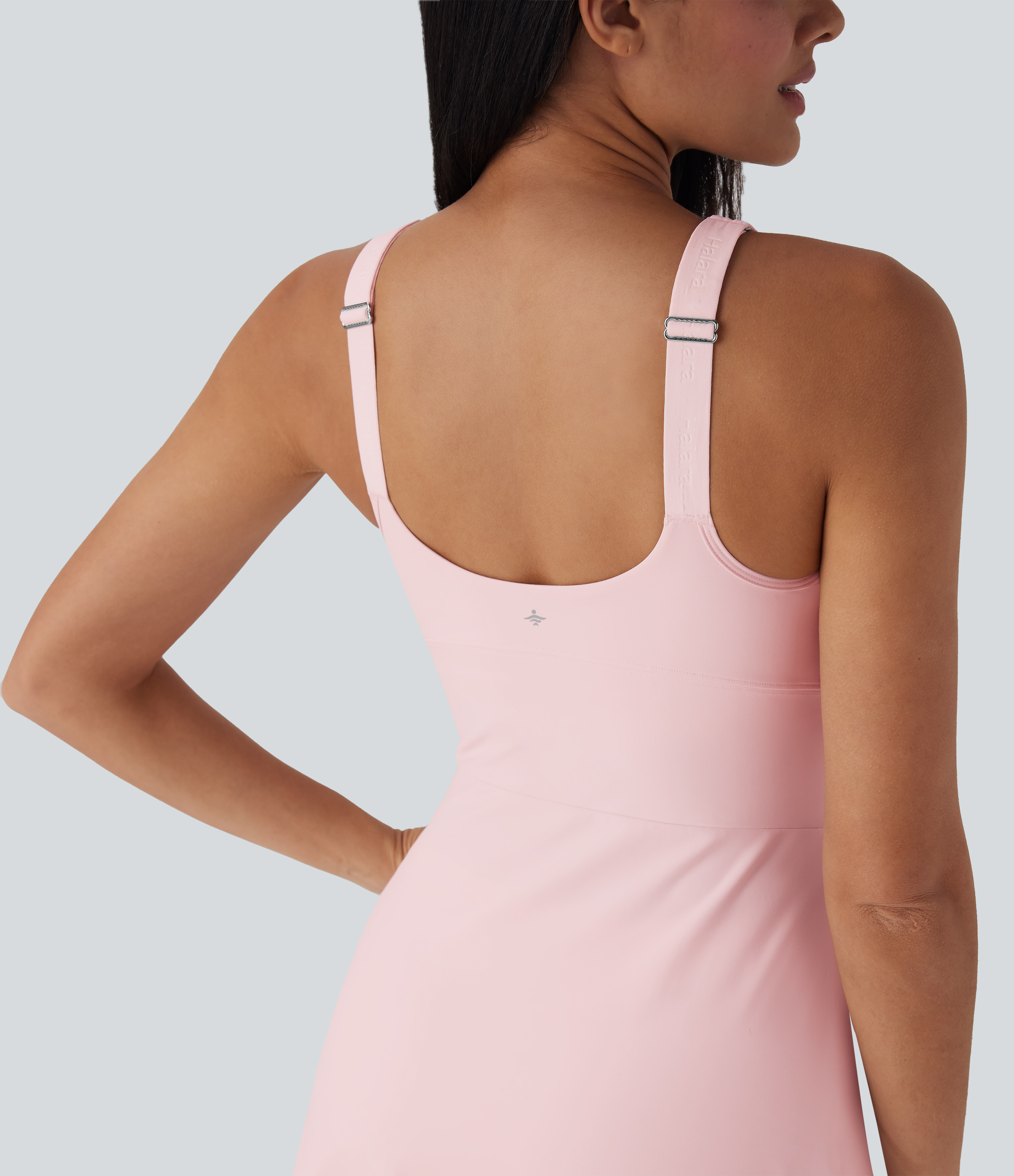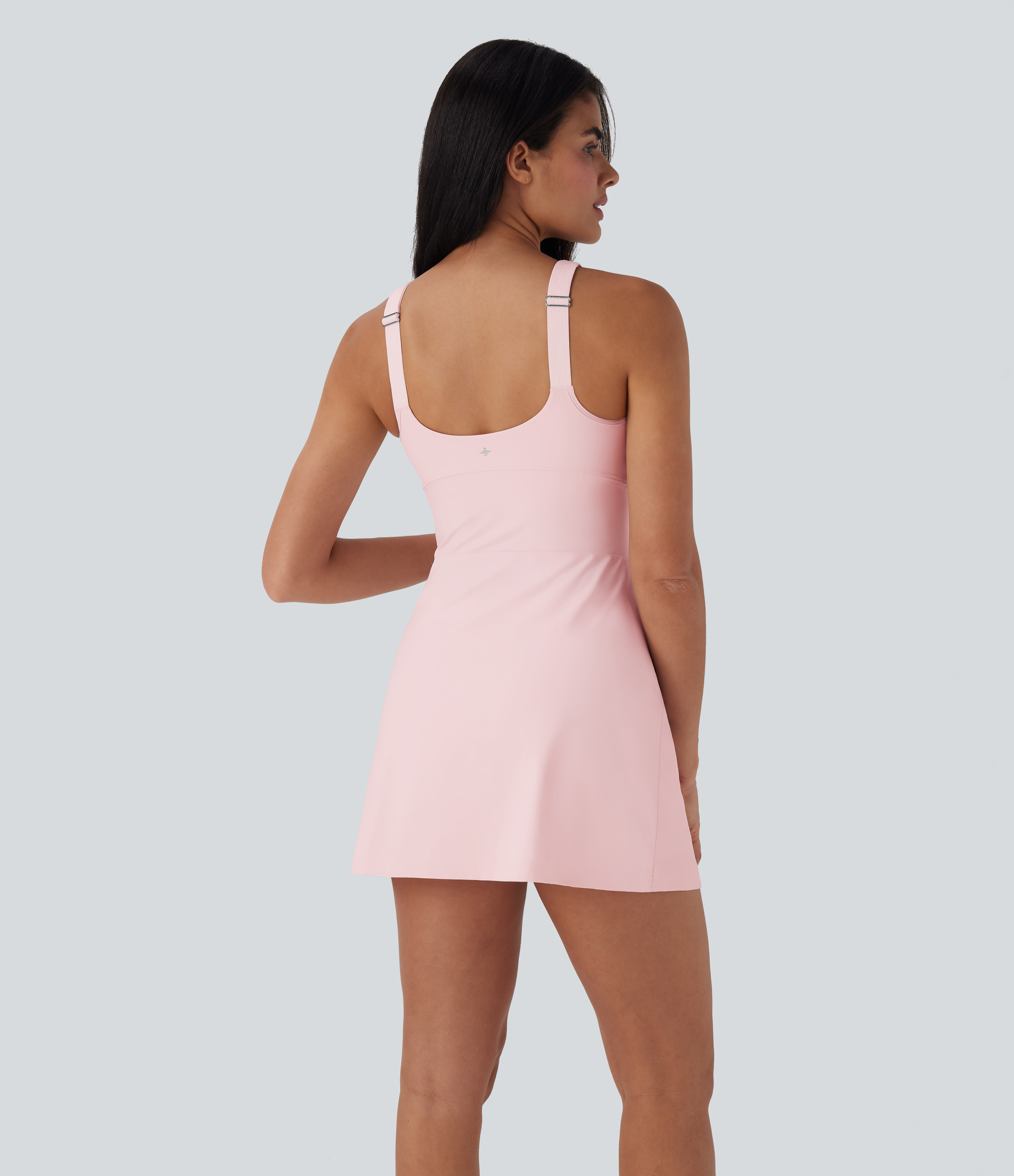 SoftlyZeroTM Plush Push-Up Molded Cups 2-in-1 Yoga Active Dress with Pockets-Easy Peezy-D/DD/DDD/F Cups
