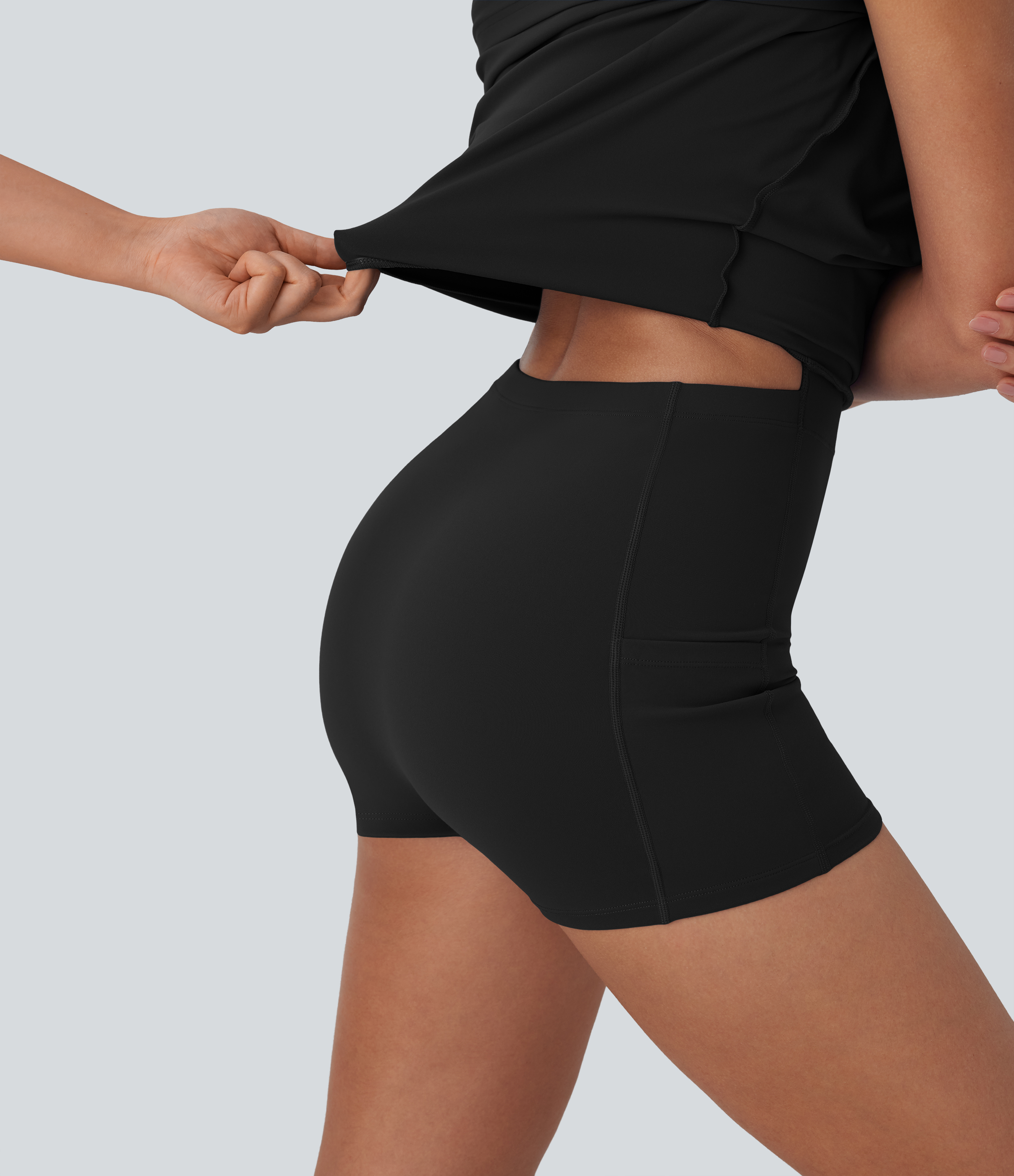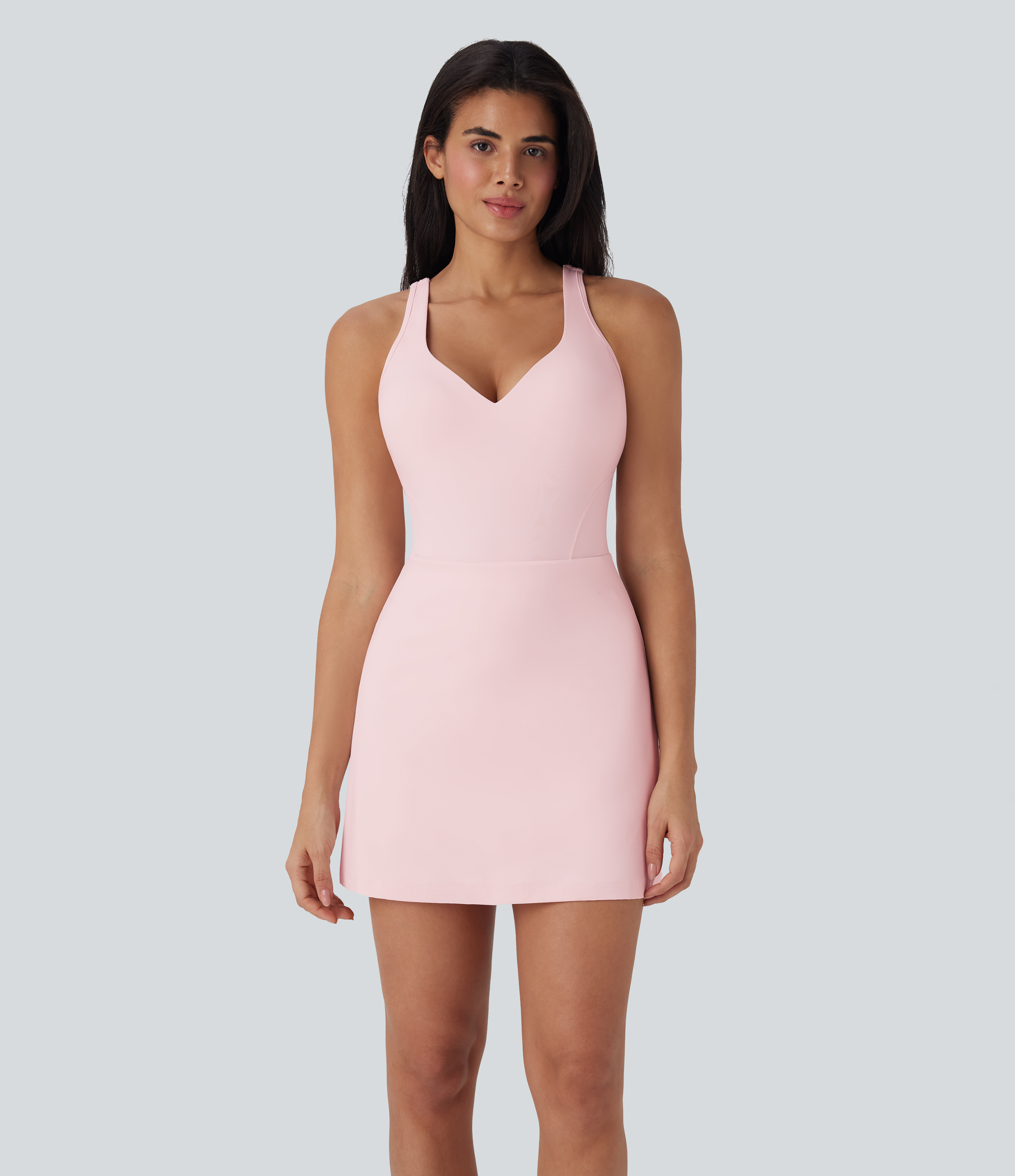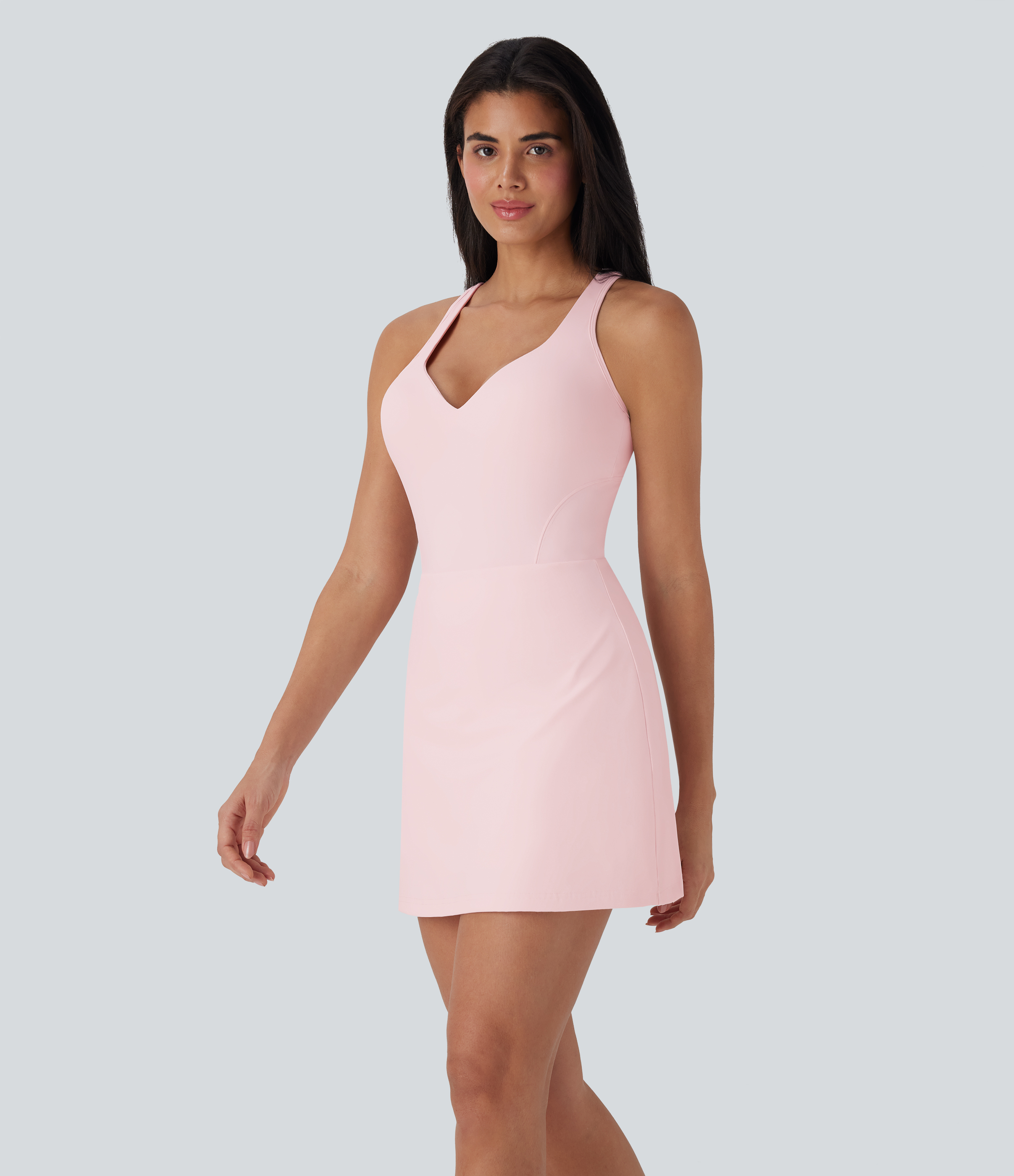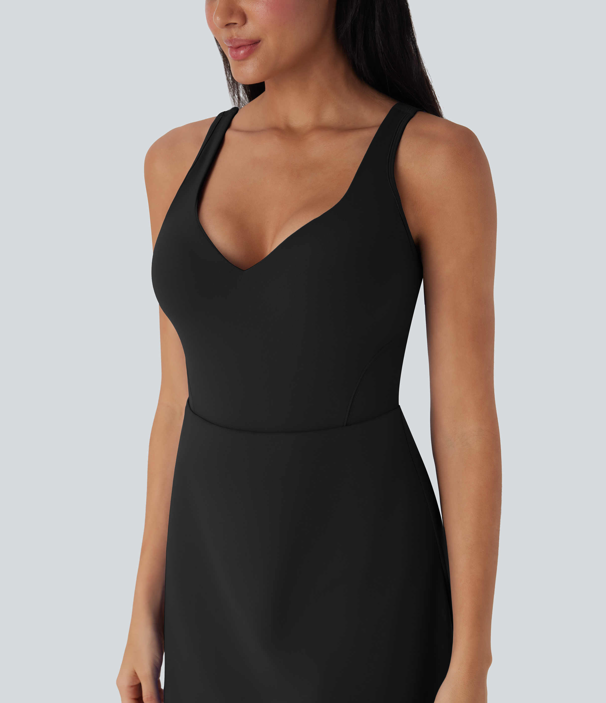 SoftlyZeroTM Plush Push-Up Molded Cups 2-in-1 Yoga Active Dress with Pockets-Easy Peezy-D/DD/DDD/F Cups